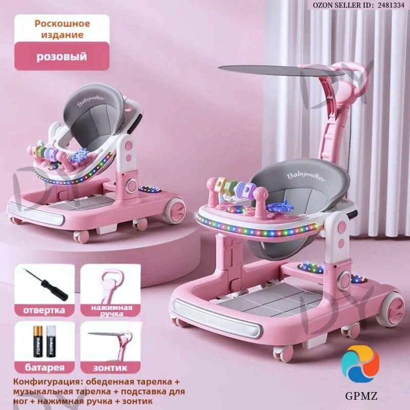 Купить GPMZ Детские ходунки, роскошные многофункциональные xодунки baby walker - Pозовый