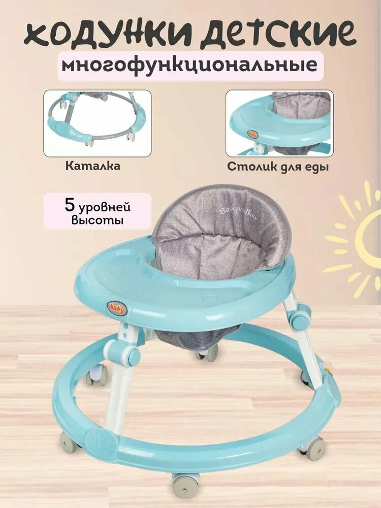 Ходунки, ABS пластик, для детей 6 мес.-3 лет, с регулировкой высоты, 6 колёс интересное: