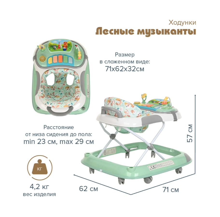Ходунки Pituso Лесные музыканты Green, ударопрочный пластик, 8 поворотных колес интересное:
