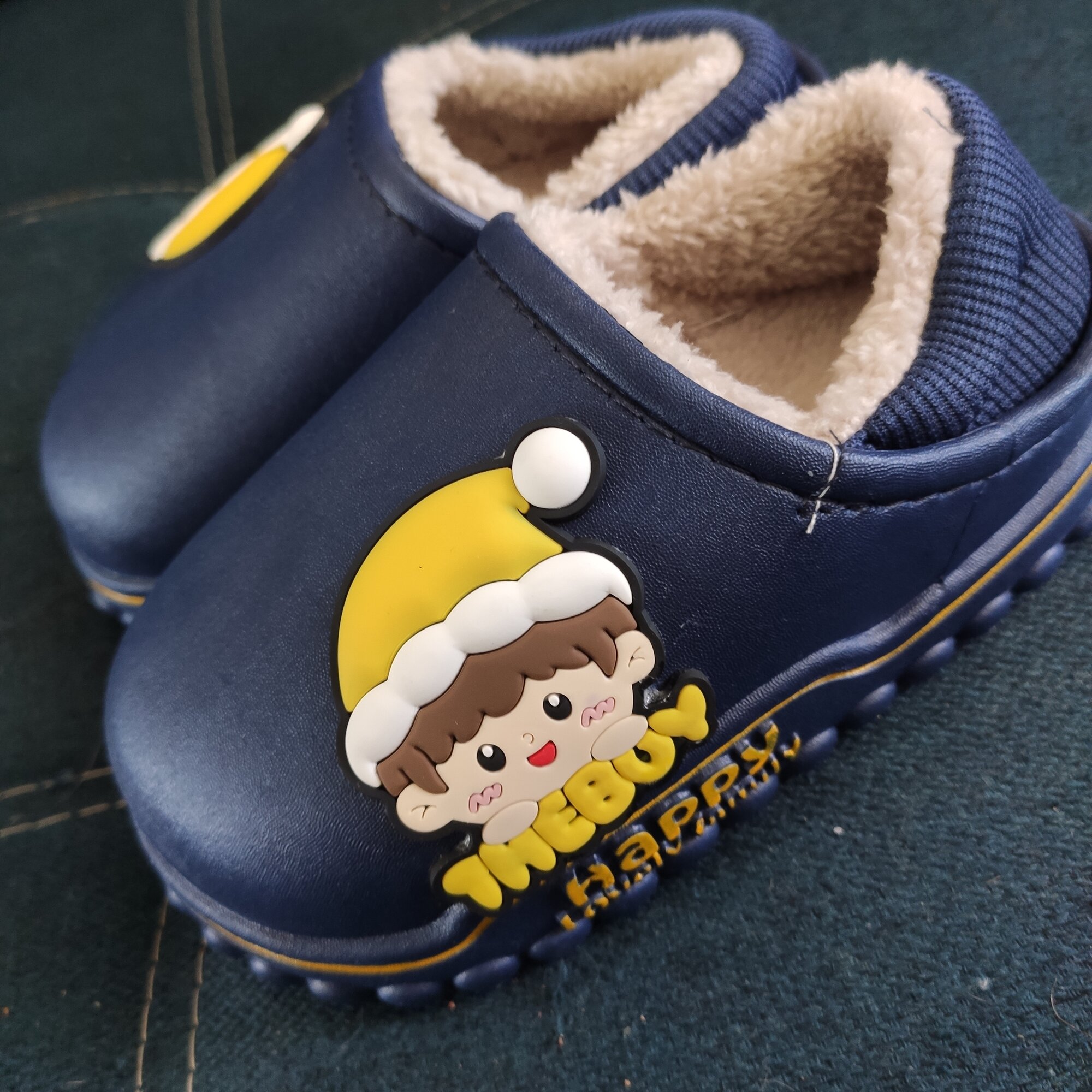 Купить Детские хлопковые тапочки , водонепроницаемые , плюшевые внутри, искусственная кожа снаружи