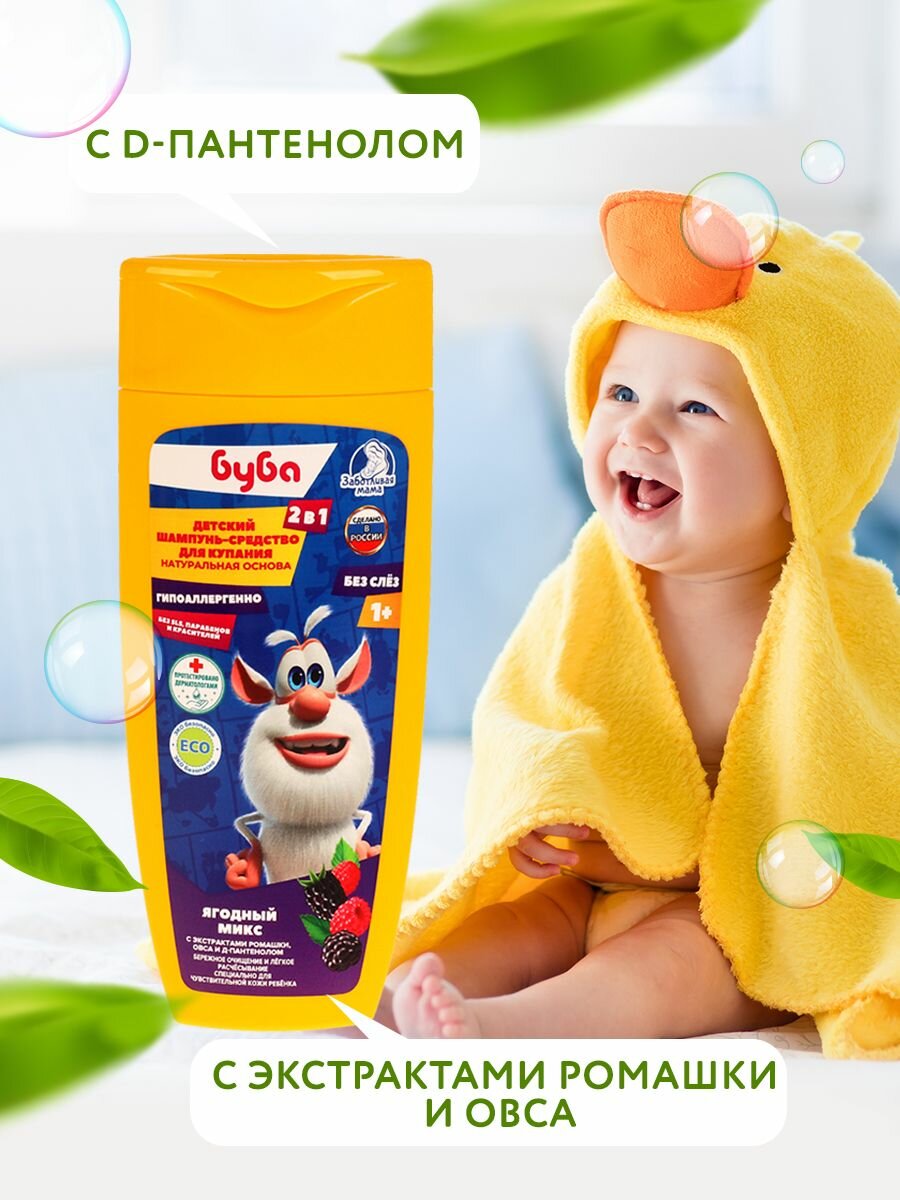 Детский шампунь Заботливая Мама Буба гипоаллергенно и безопасно без слез ягодный микс интересное: