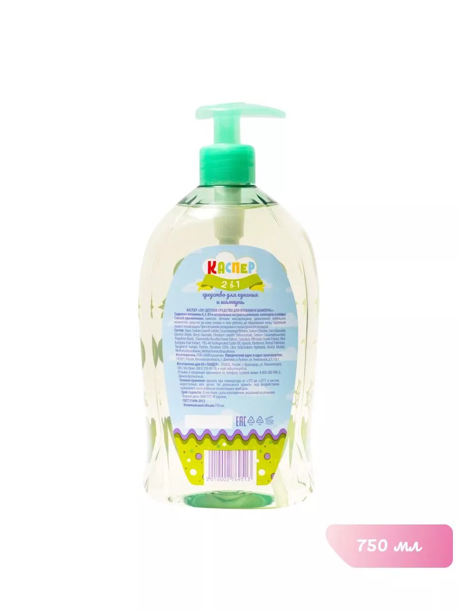 Детское средство для мытья головы и тела Каспер, 750 мл интересное: