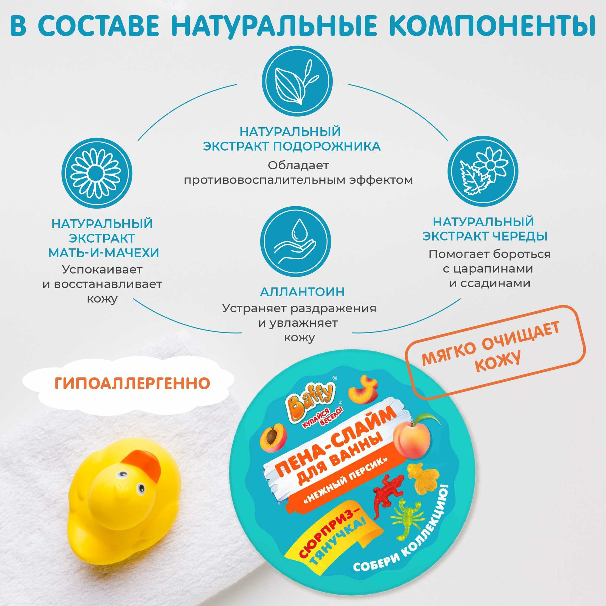 Baffy Пена-слайм для ванны детская с сюрпризом "Нежный персик", 300 мл интересное: