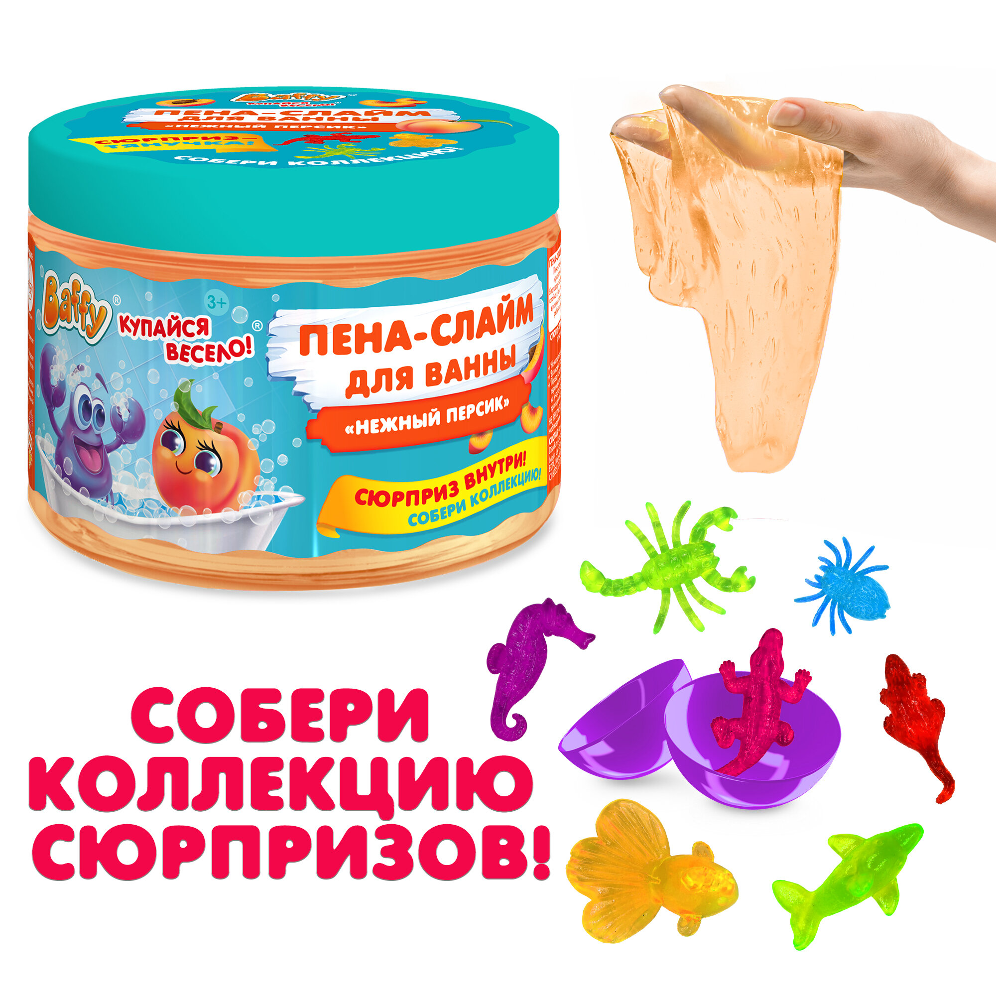 Купить Baffy Пена-слайм для ванны детская с сюрпризом "Нежный персик", 300 мл