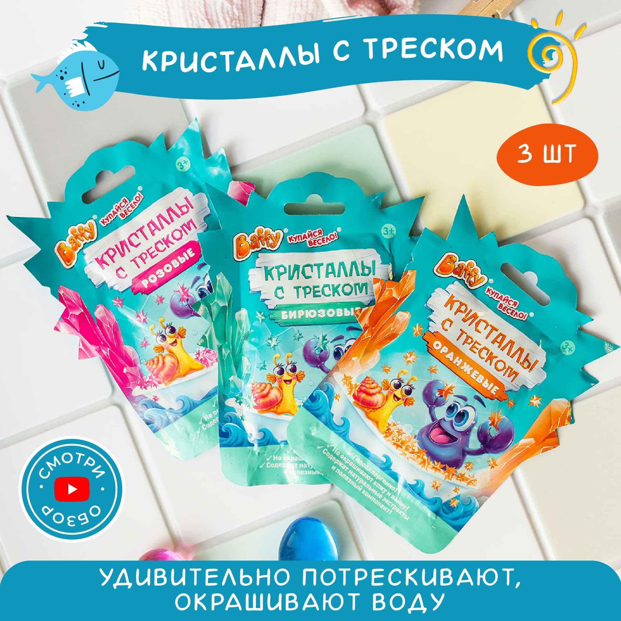 Ниже Вы можете прочитать отзывы на Кристаллы с треском Baffy набор 3 шт, бомбочка, соль для ванны, шипучка для детей, для купания, для душа, бирюзовый, ознакомится с подробными характеристиками, посмотреть интересные обзоры и фотографии на Кристаллы с треском Baffy набор 3 шт, бомбочка, соль для ванны, шипучка для детей, для купания, для душа, бирюзовый.