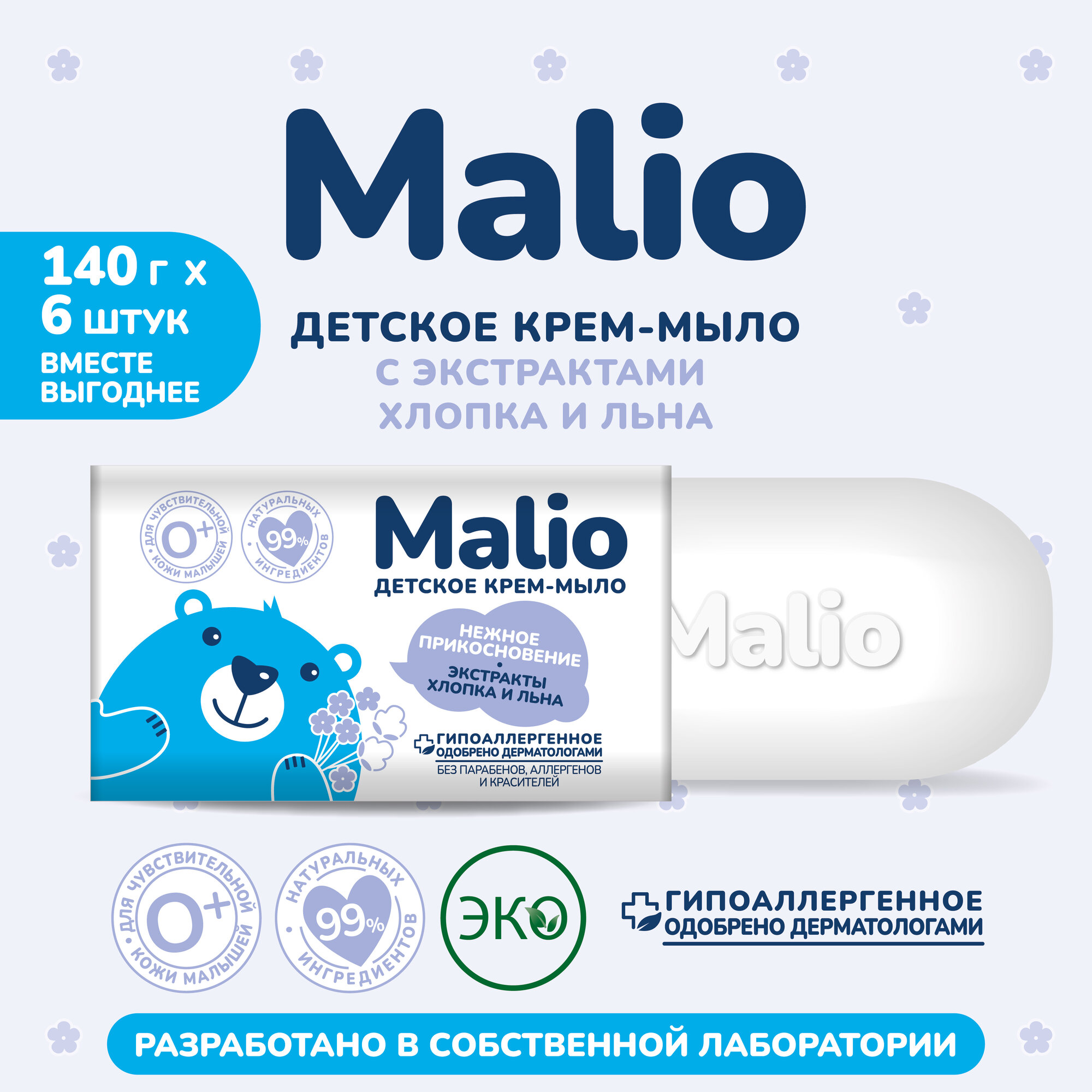 Детское мыло Малио "Нежное прикосновение", гипоаллергенное, 140г, 6шт интересное: