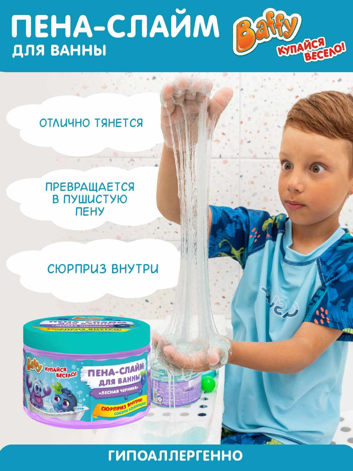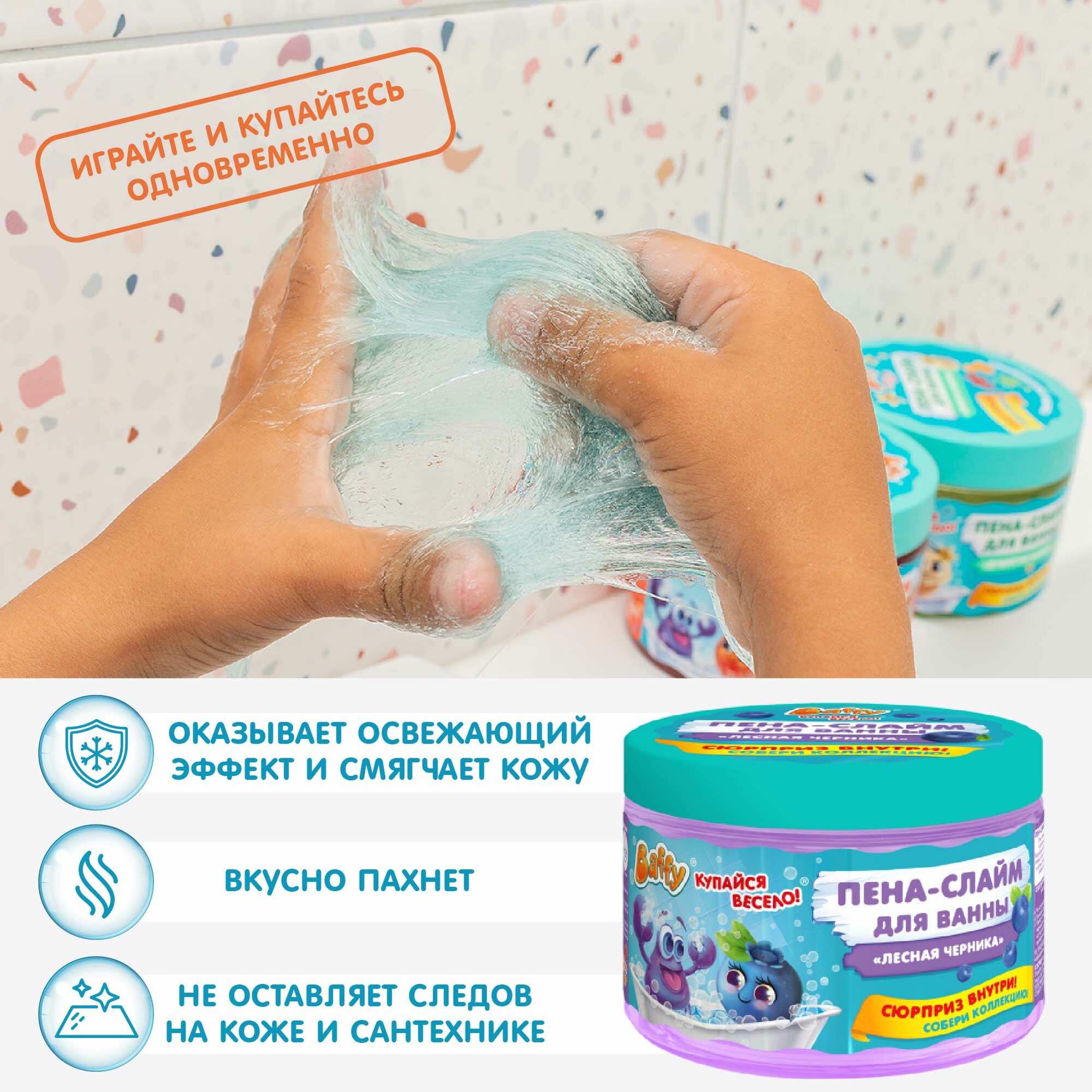 Купить Baffy Пена-слайм для ванны детская с сюрпризом "Лесная черника", 300 мл