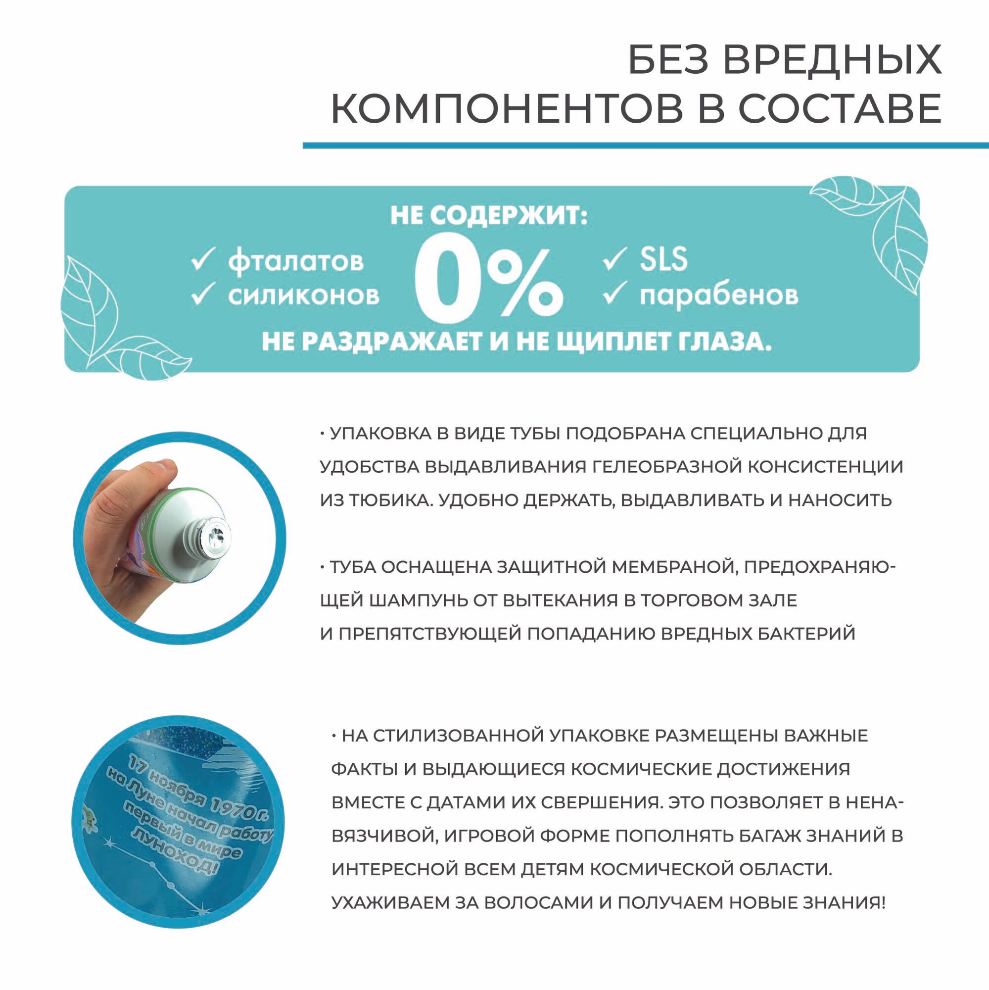 Шампунь мегагель детский Baffy "Космический", перламутровый, золотой, без сульфатов, 275мл