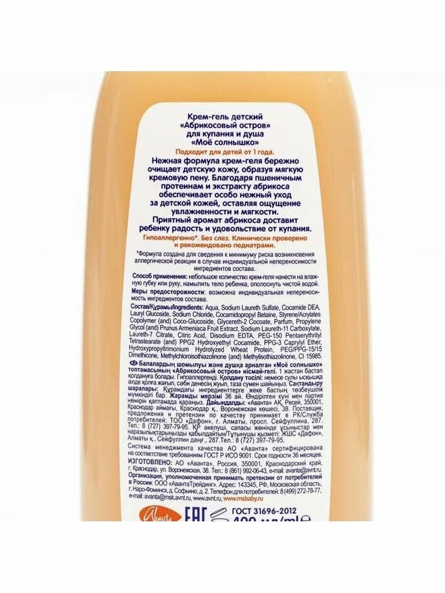 Аванта Крем-гель детский Моё солнышко Абрикосовый остров для купания и душа 400 мл интересное: