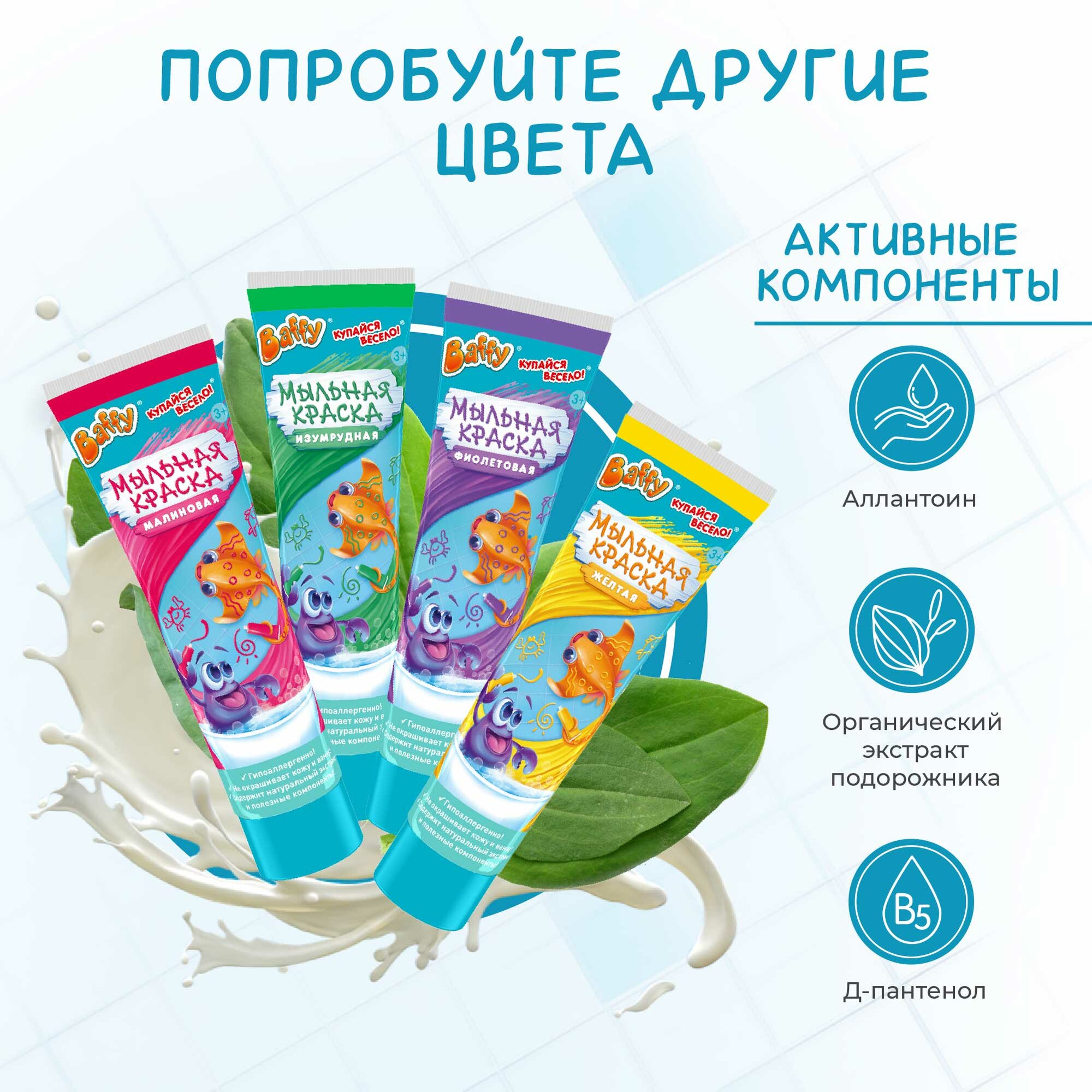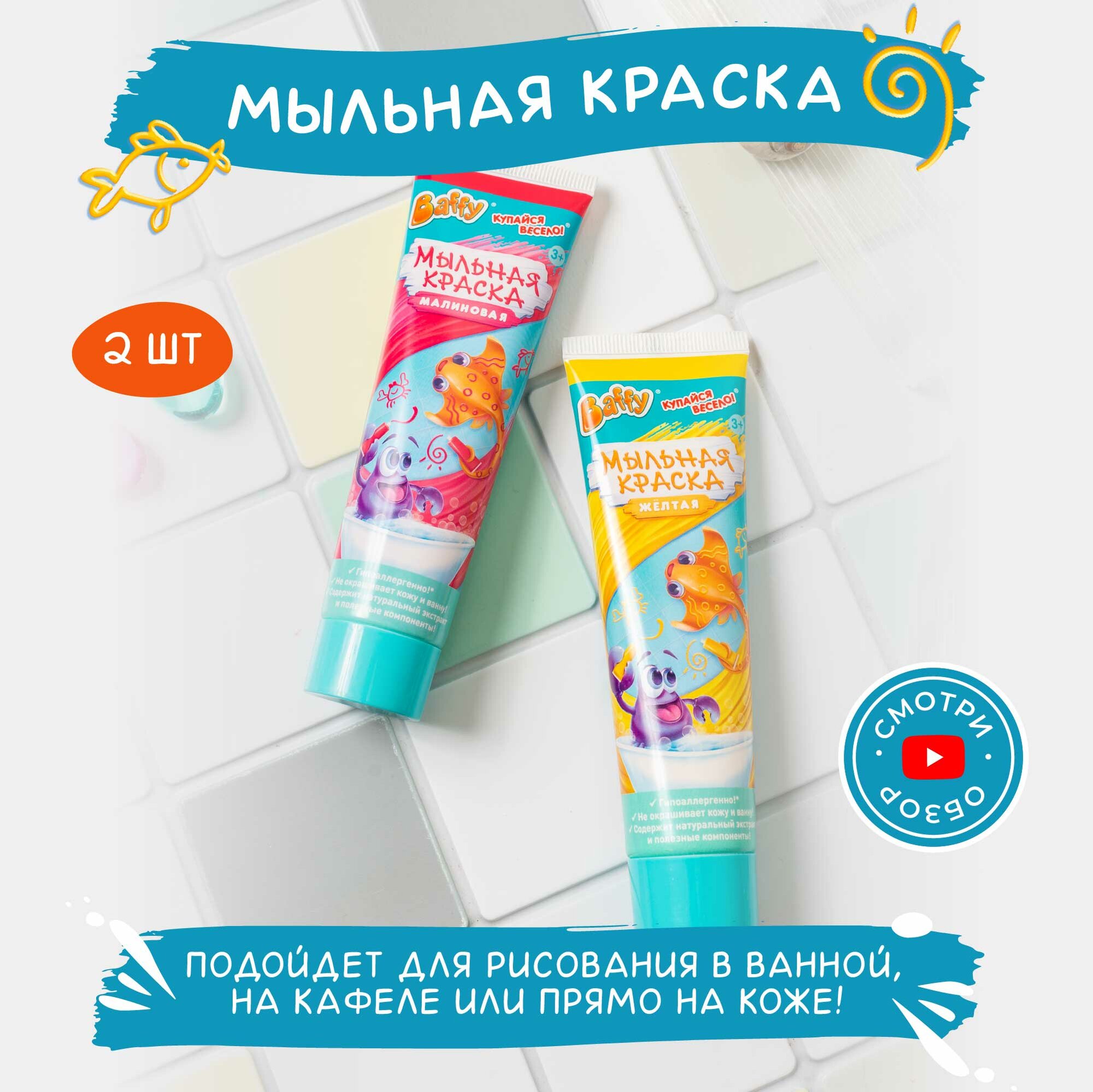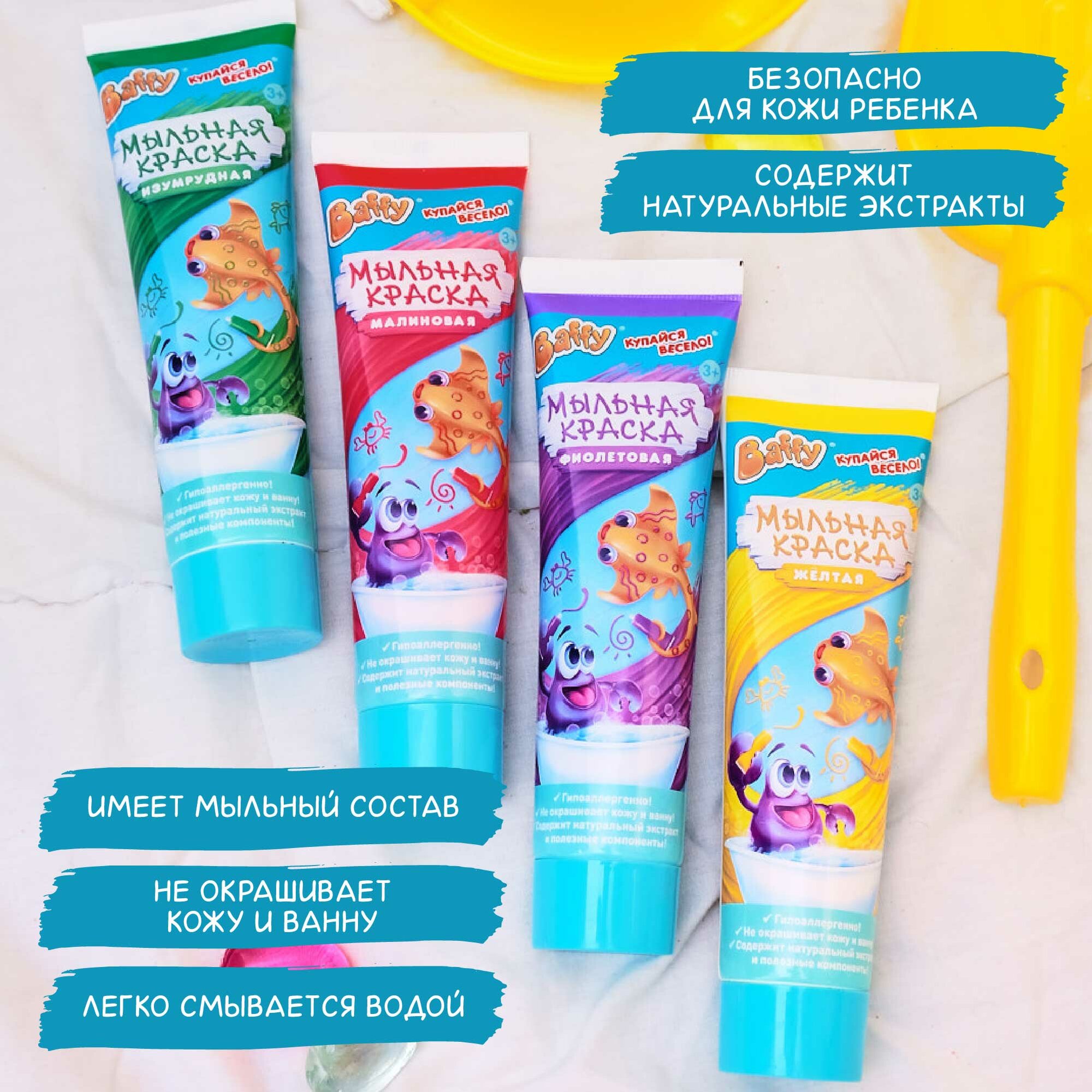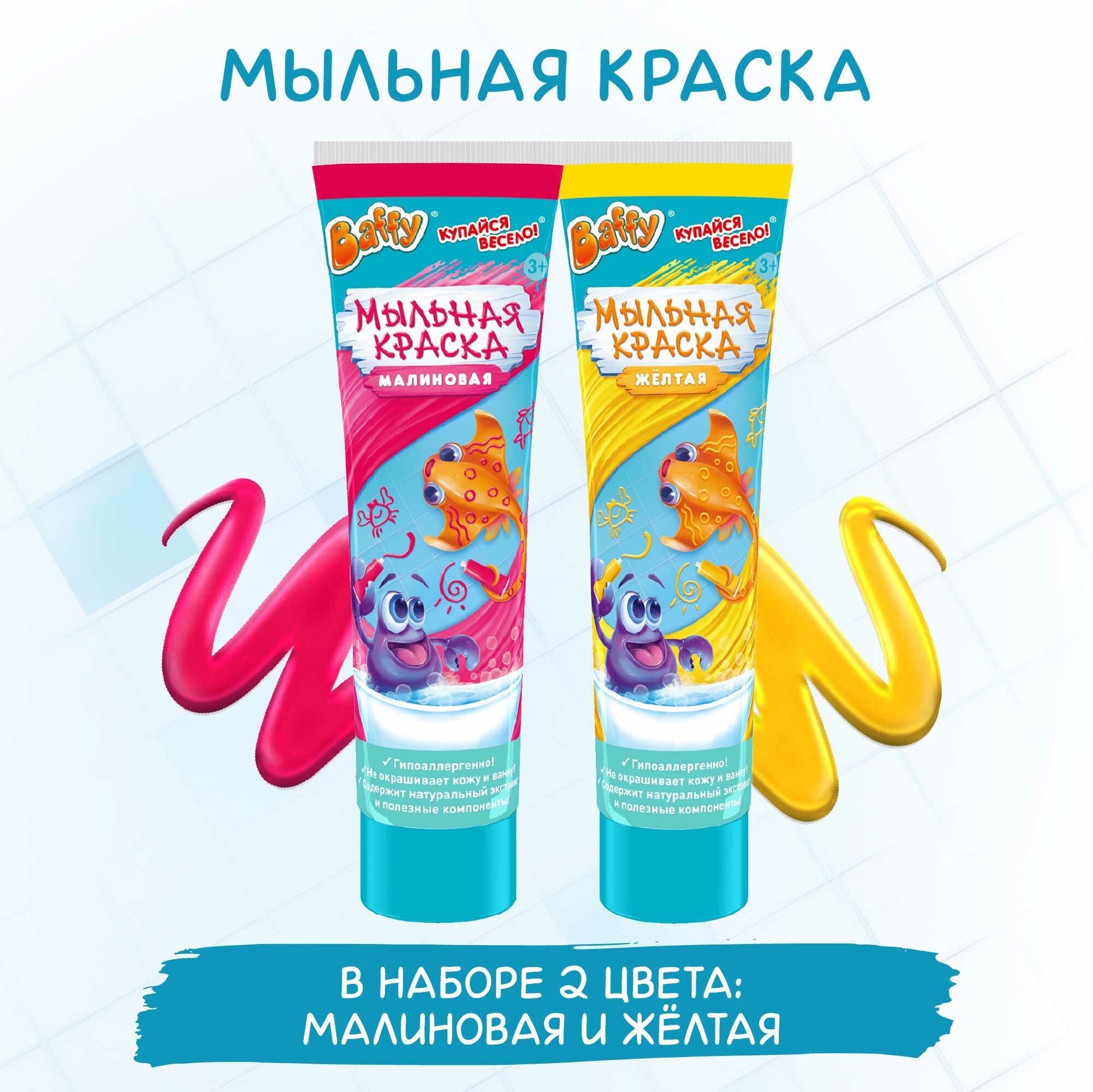 Набор мыльной краски Baffy "Малиновый + Желтый", пальчиковая краска 2шт, 180 гр интересное:
