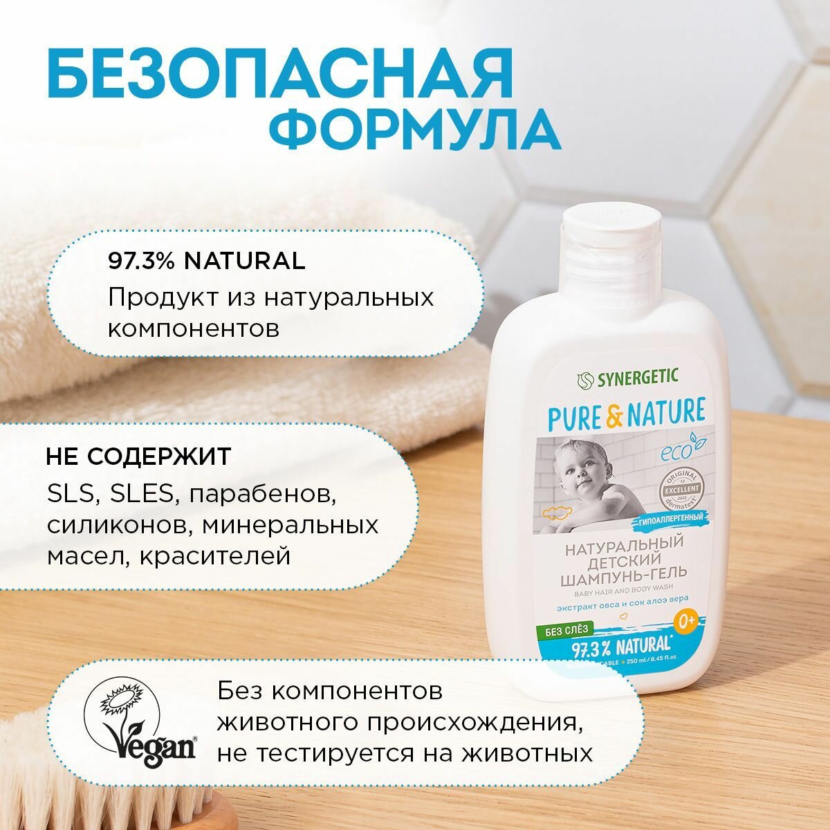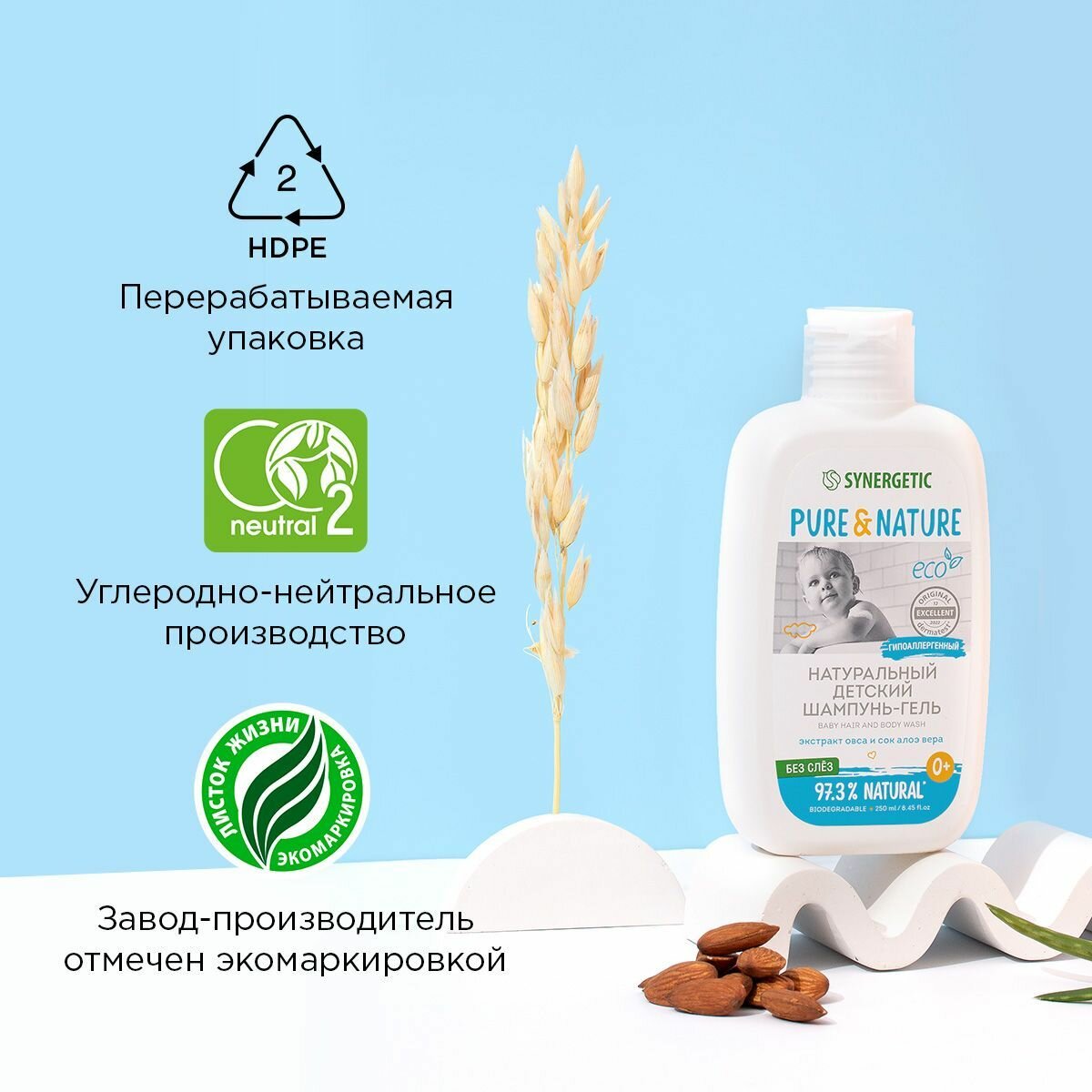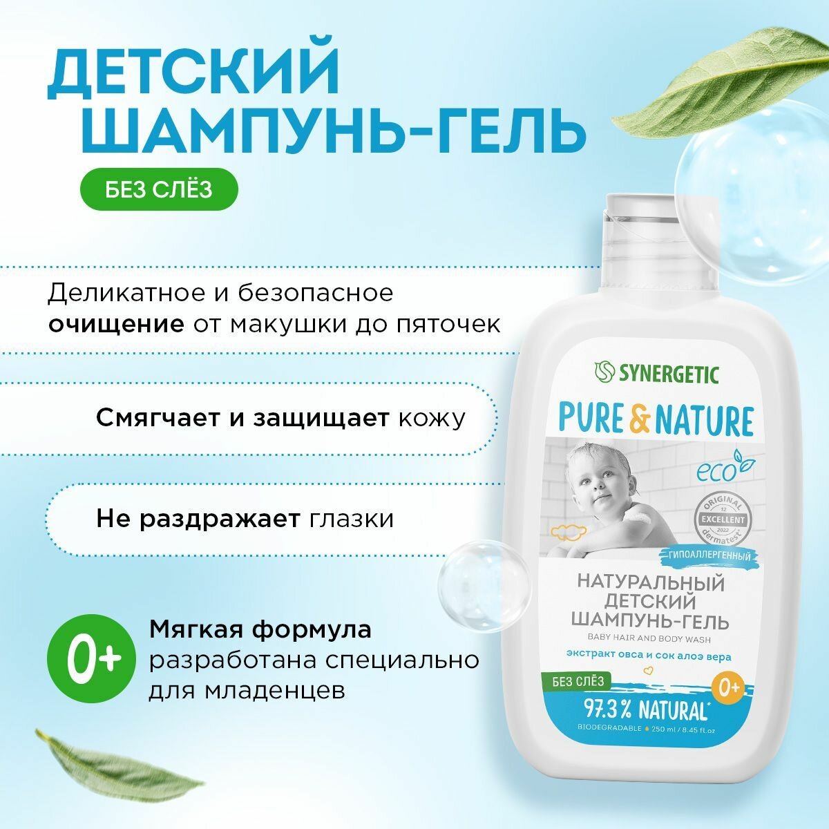 Купить Детский шампунь-гель для волос и тела 0+ "без слез" натуральный гипоаллергенный SYNERGETIC, 250 мл