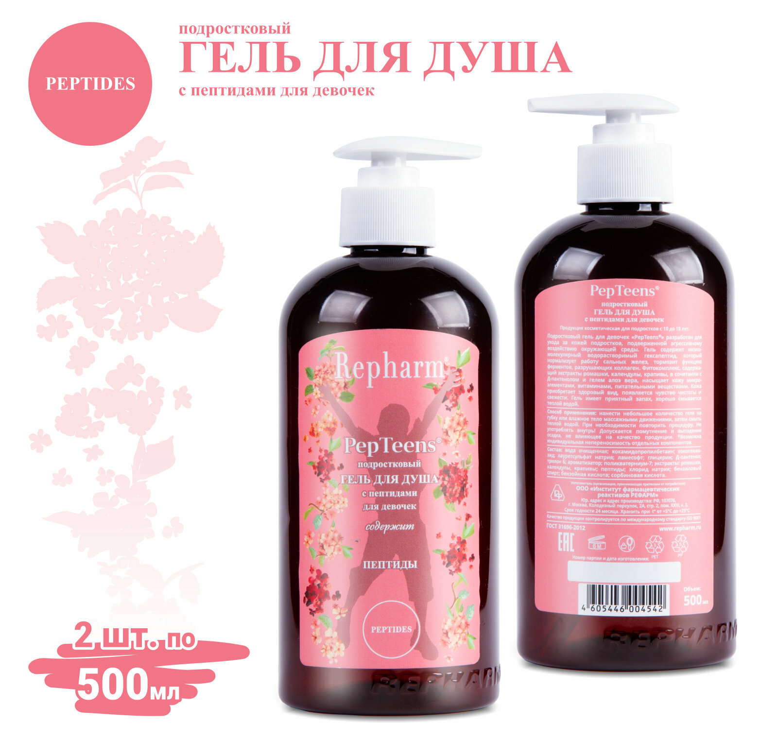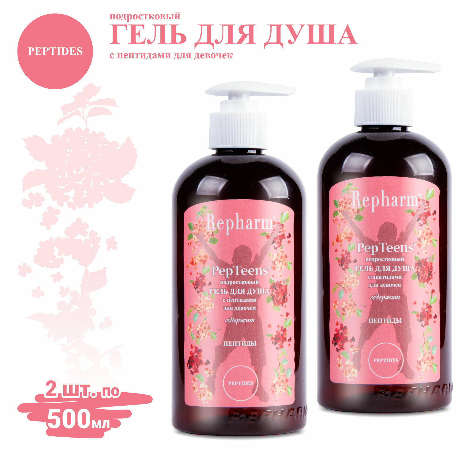 Купить Гель для душа Repharm PepTeens ® (пептинс) подростковый c пептидами с дозатором для девочек, 500 мл - 2 шт