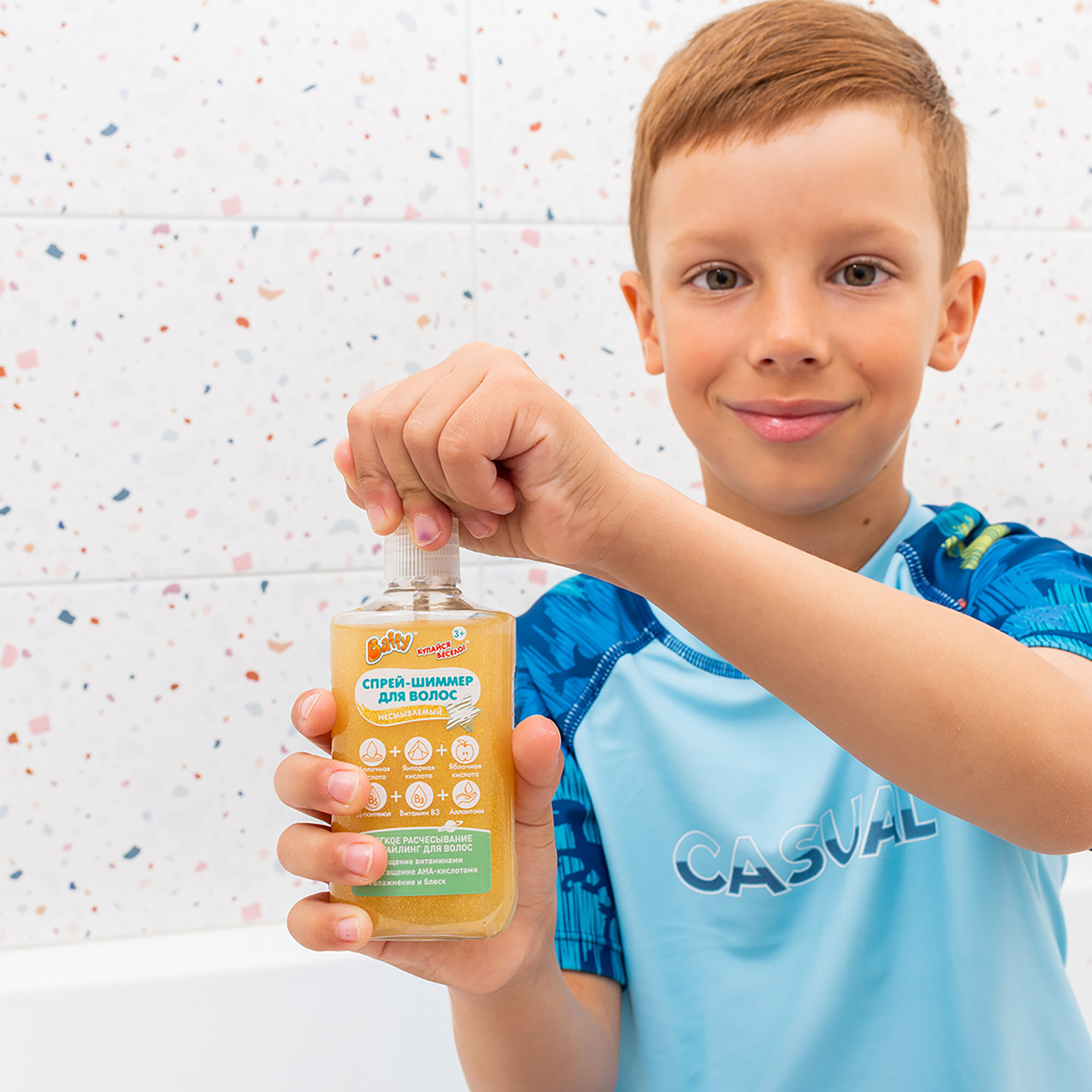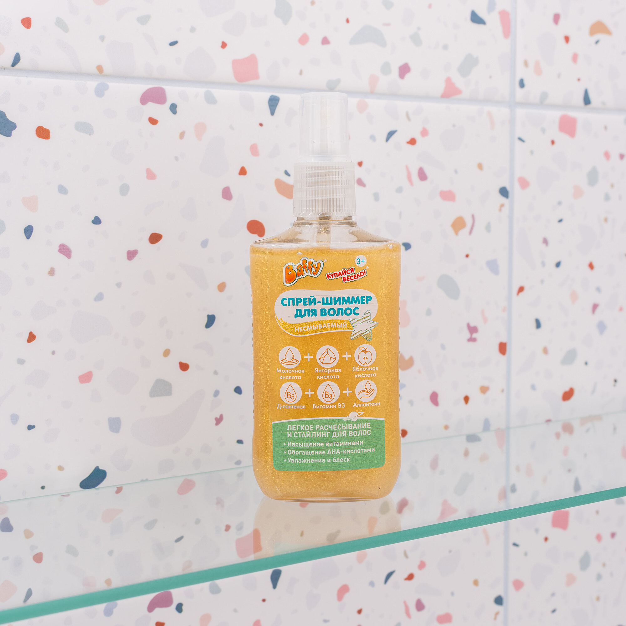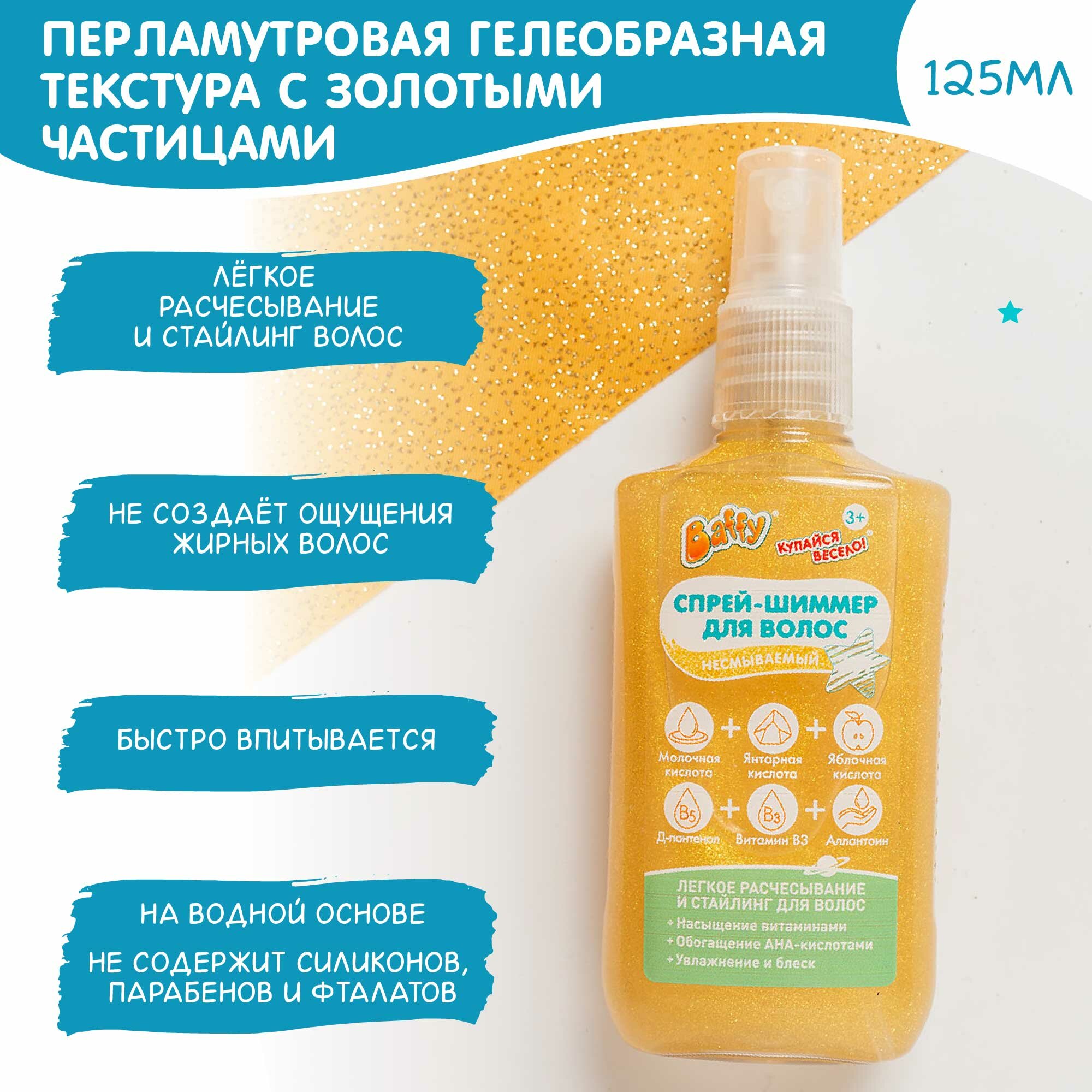 Подарочный набор Baffy "Золотой" для девочек, шампунь-мегагель, спрей-шиммер и аксессуары для волос