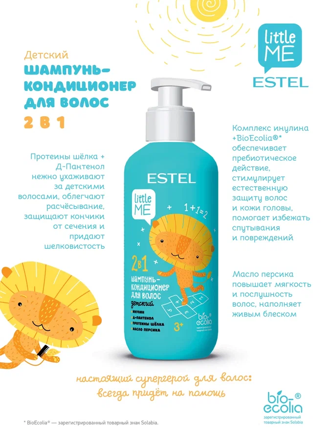 ESTEL Детский шампунь-кондиционер для волос 2 в 1 Little Me, 300 мл интересное: