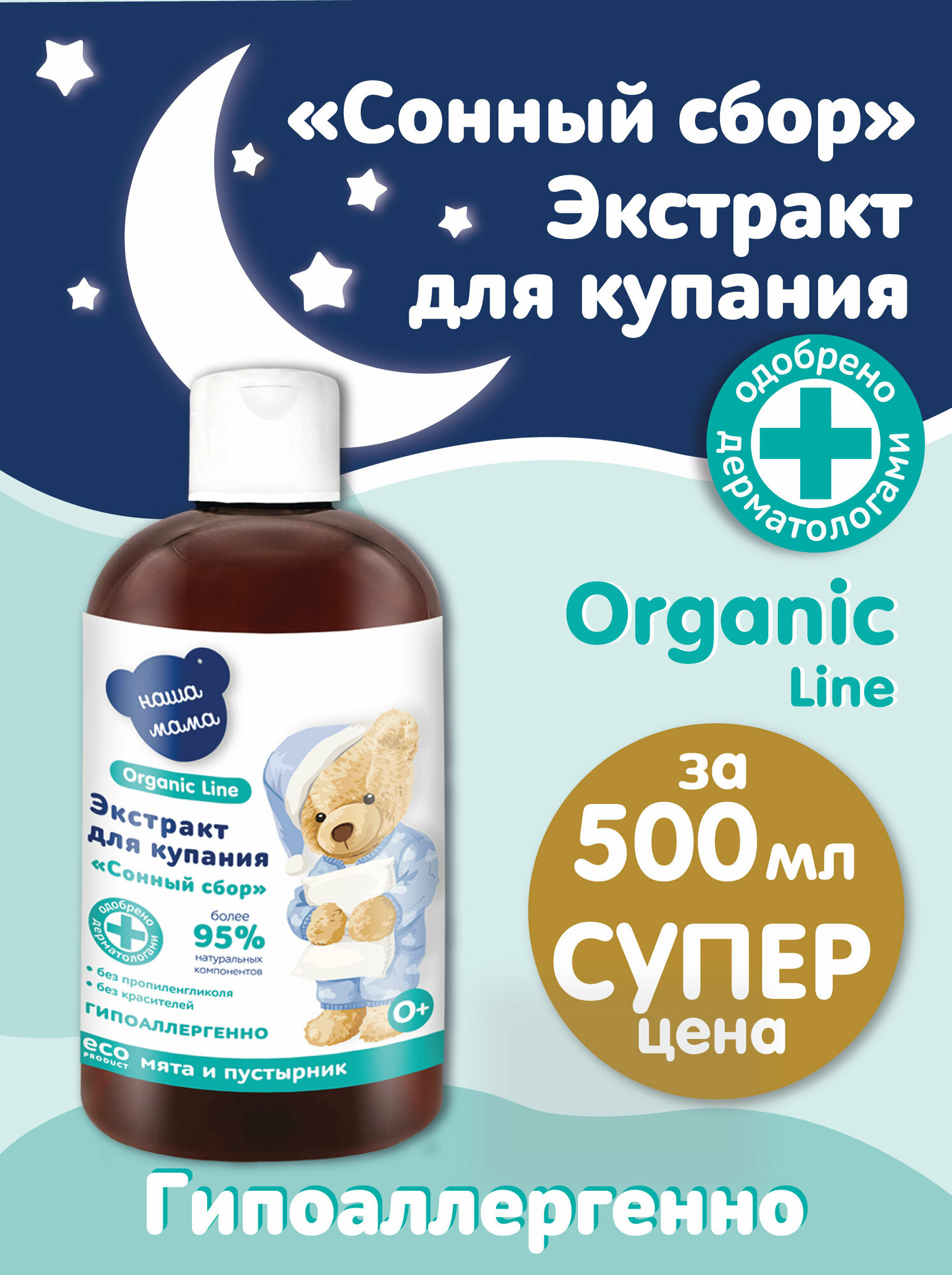 Organic line/Органик лайн Экстракт для купания новорожденных "Сонный сбор" (Мята, Пустырник), успокаивающий, 500мл интересное: