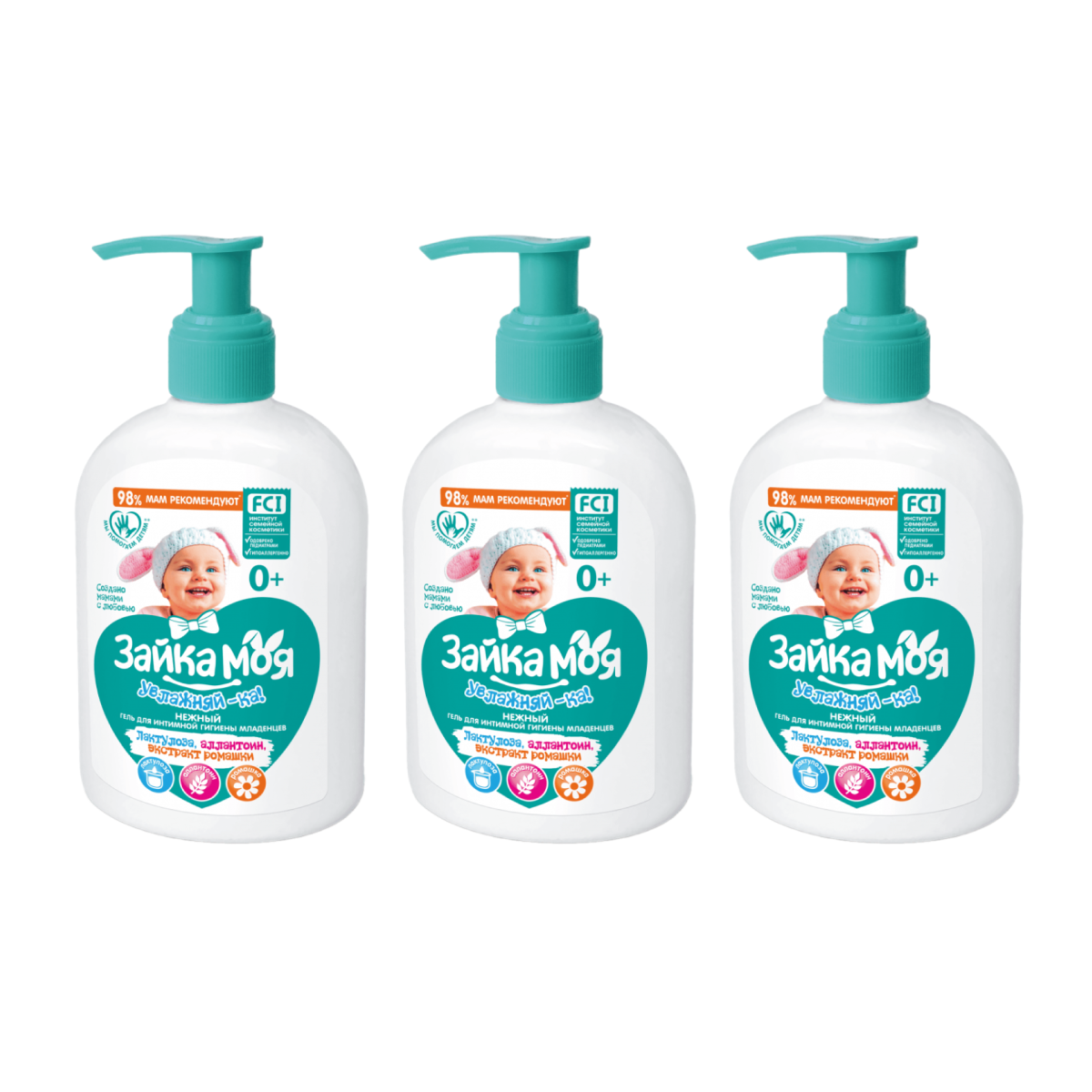 Купить ПКК Весна Гель для интимной гигиены детский Зайка Моя Увлажняй-ка! гель для мытья для детей 3 шт по 280 г