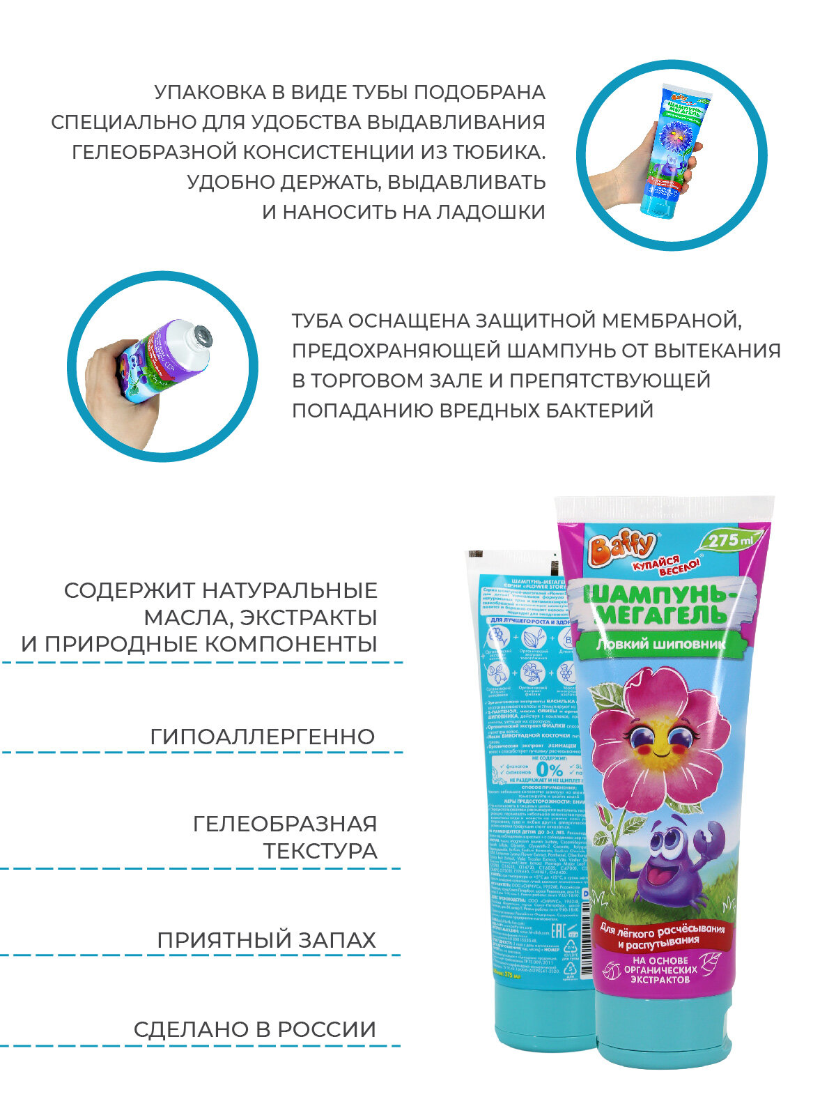 Шампунь-мегагель Baffy "Ловкий шиповник", для детей, гипоаллергенный, 275мл интересное: