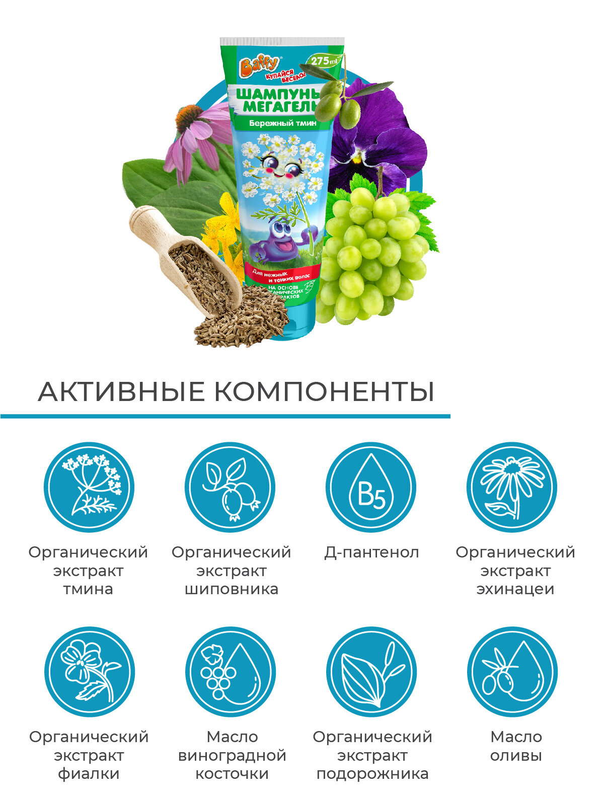 Шампунь-мегагель детский "Бережный тмин", гипоаллергенно,275 мл. интересное:
