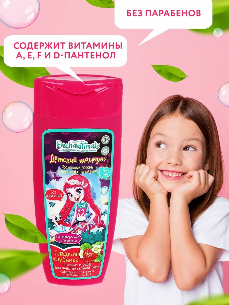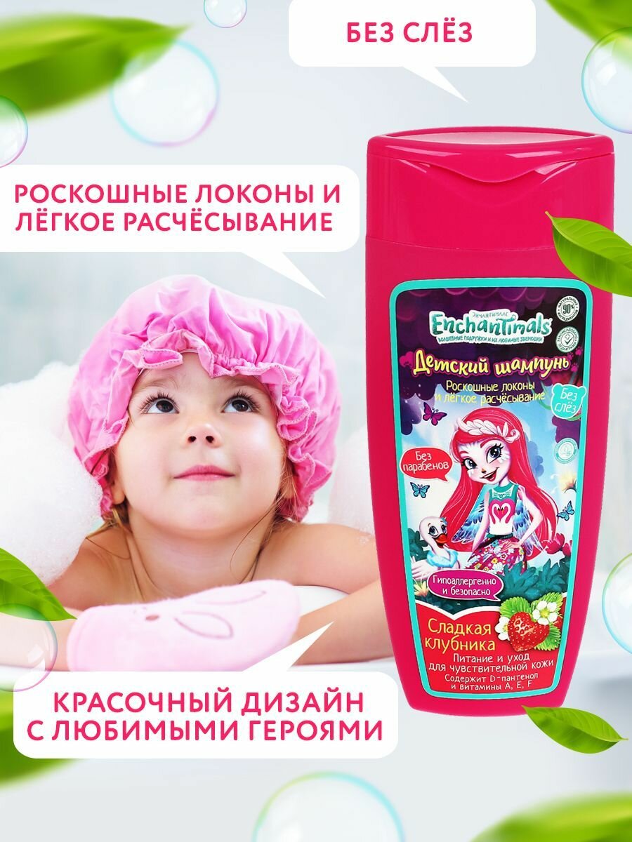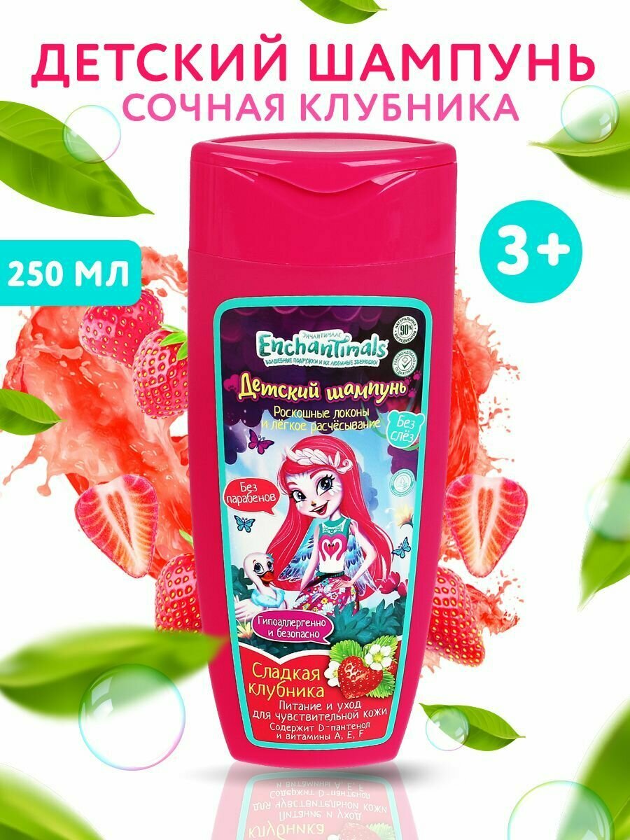 Шампунь детский Заботливая Мама Enchantimals на натуральной основе с клубникой без слез 250 мл интересное: