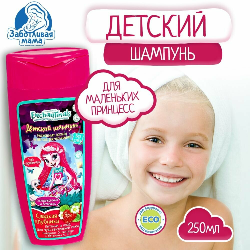 Купить Шампунь детский Заботливая Мама Enchantimals на натуральной основе с клубникой без слез 250 мл
