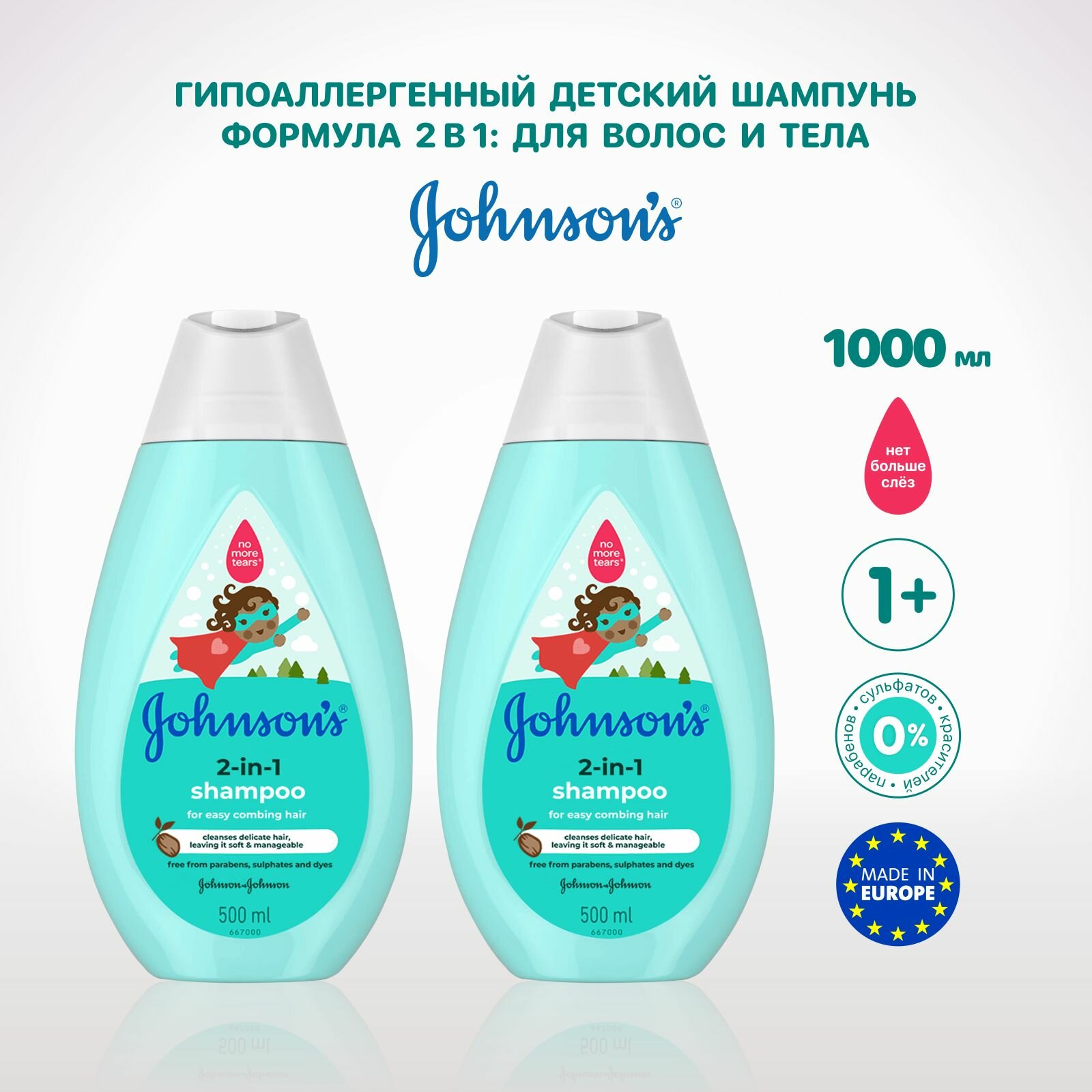 Купить Johnson's baby Шампунь для волос и тела детский гипоаллергенный 2в1 без слез, 500мл*2шт