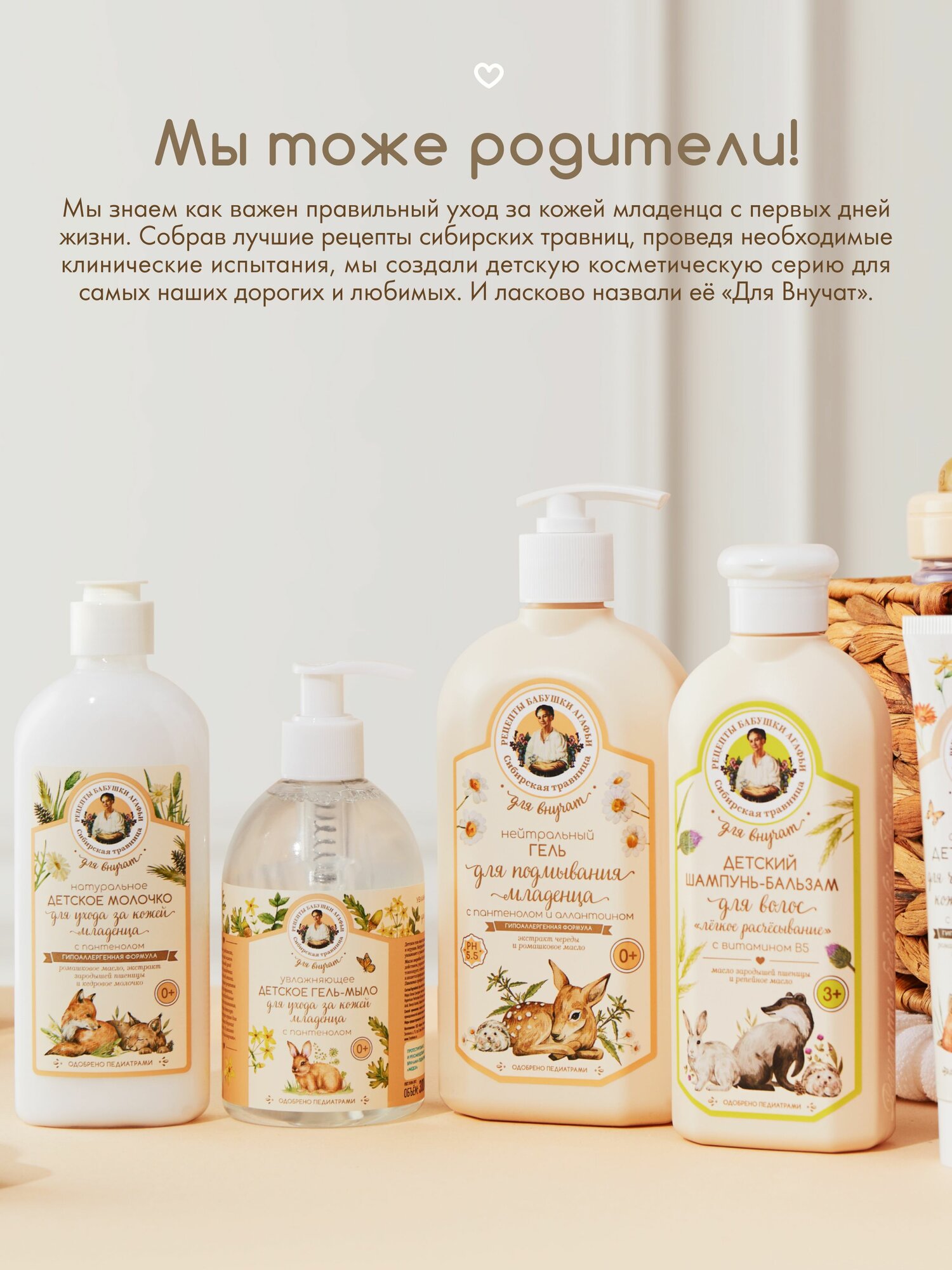 Нейтральный детский шампунь-гель с вит. В5 для волос и тела "3+" Рецепты бабушки Агафьи, Сибирская травница, Для Внучат, 500 мл
