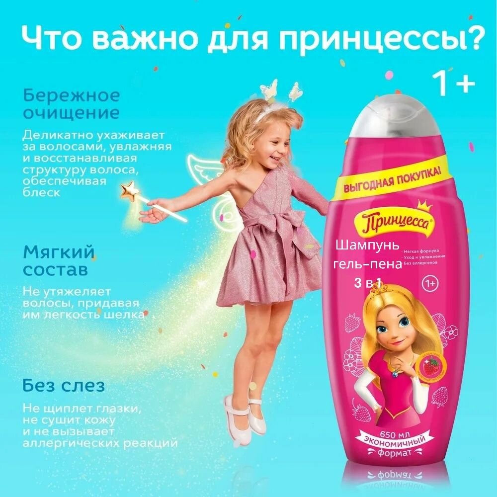 Принцесса Детский шампунь гель- пена 3 в 1, клубника, 650 мл интересное: