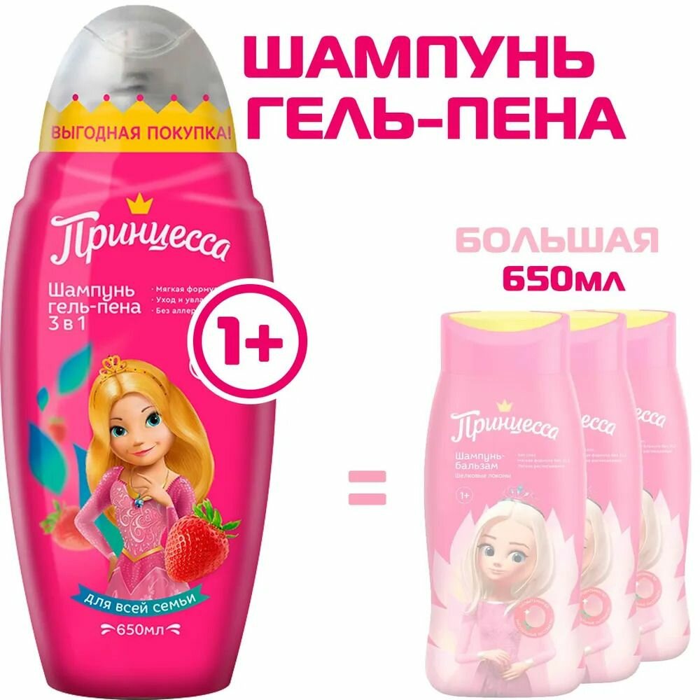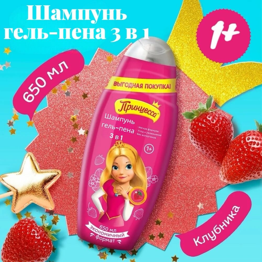 Купить Принцесса Детский шампунь гель- пена 3 в 1, клубника, 650 мл
