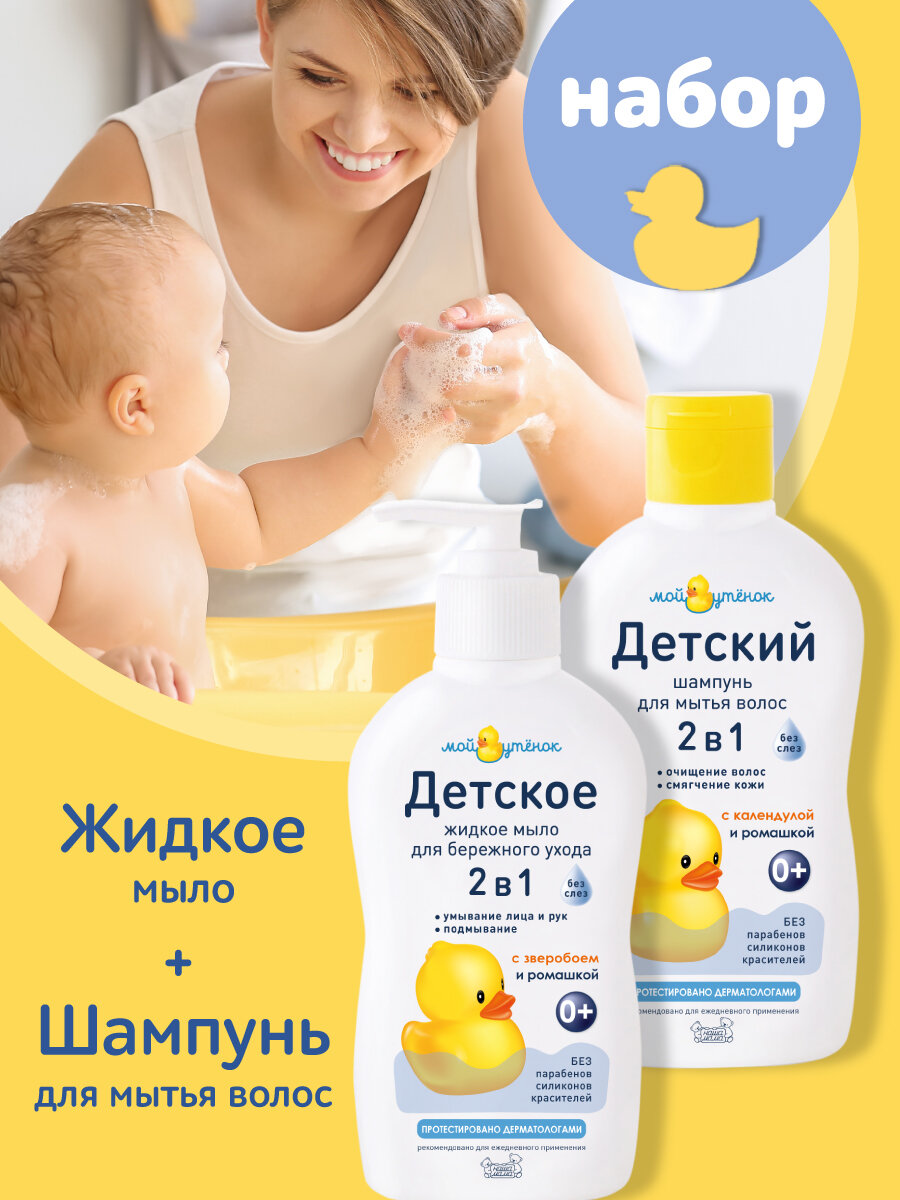 Купить Мой Утенок Набор для купания Детский шампунь 2 в1 250мл; жидкое мыло 2 в1 250мл, 0+