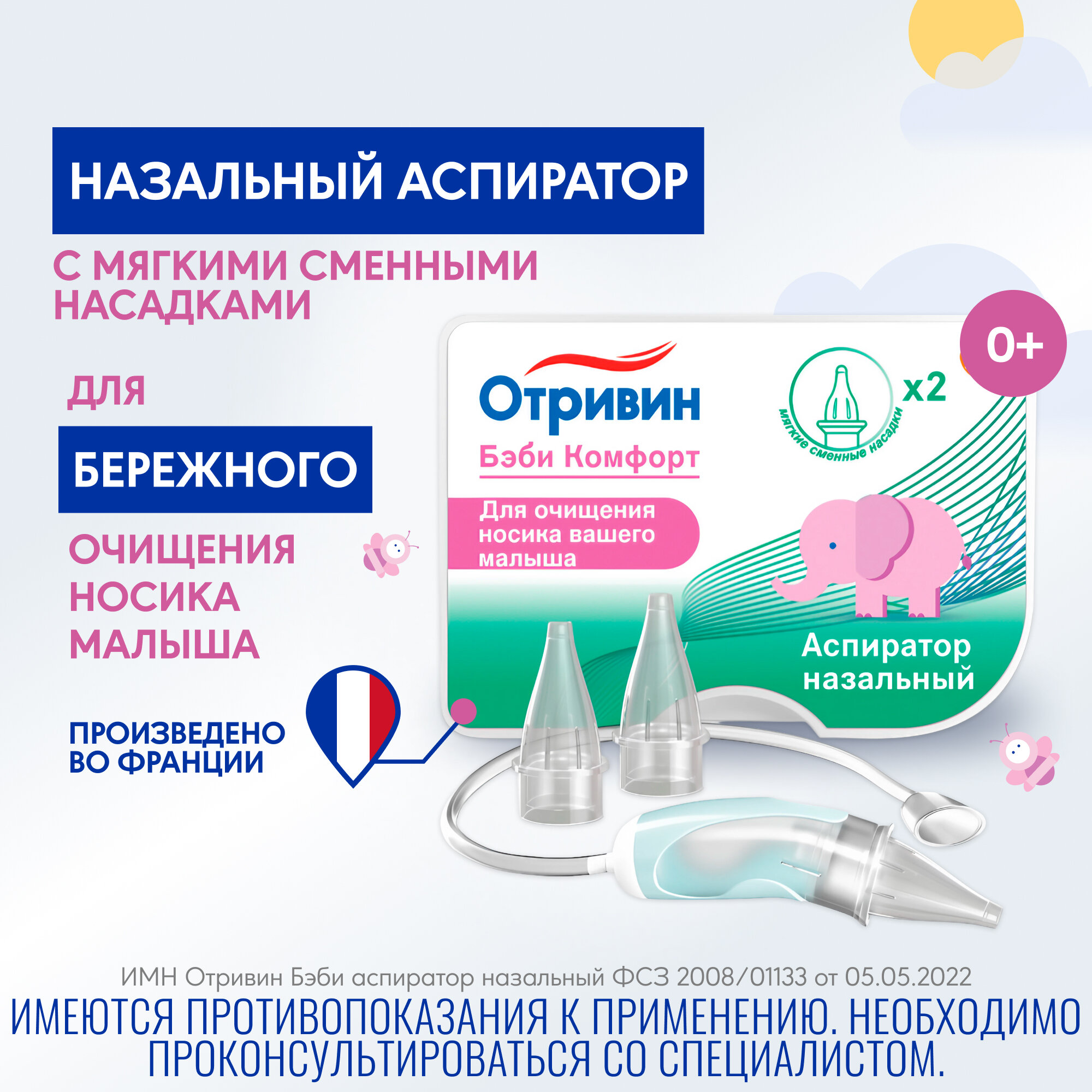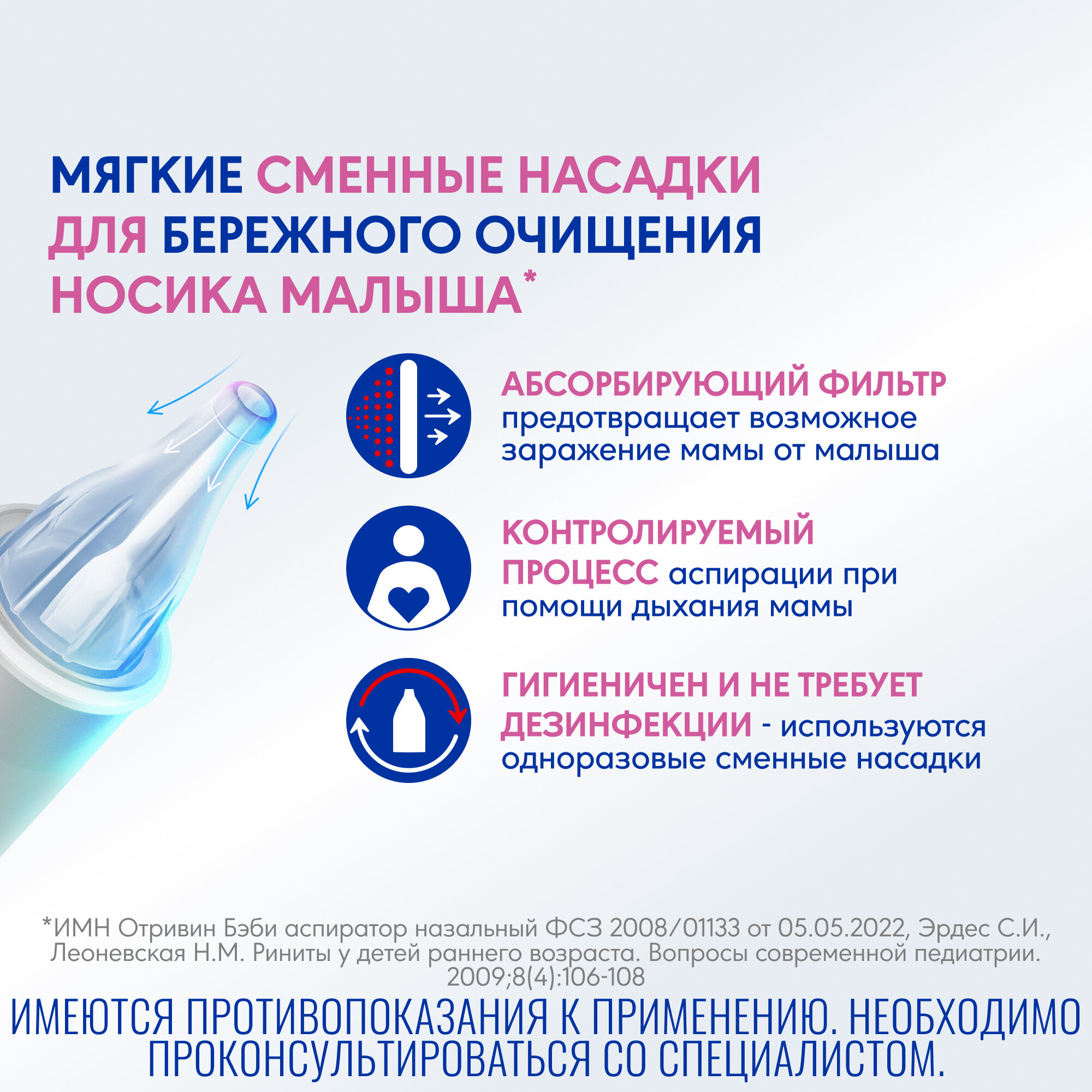 Отривин Бэби Комфорт аспиратор назальный детский со сменными одноразовыми насадками, 1шт + 2 насадки интересное: