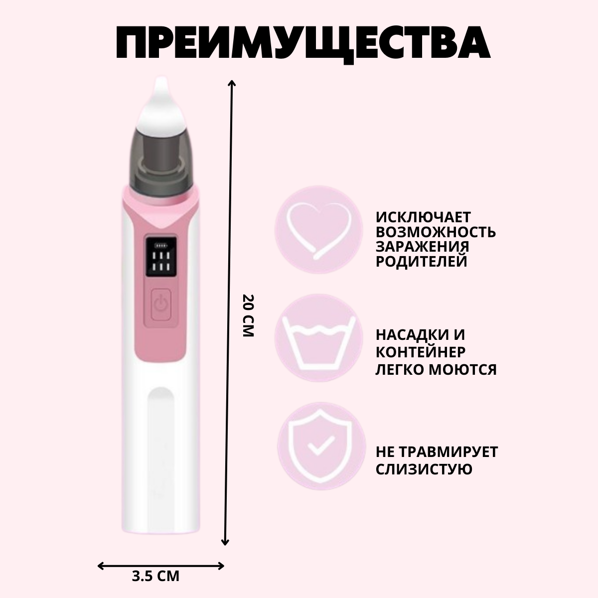 Назальный аспиратор детский электронный, с 2 сменными насадками, розовый интересное: