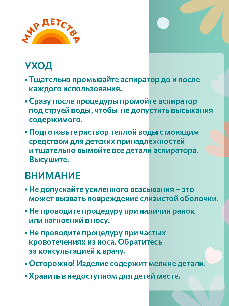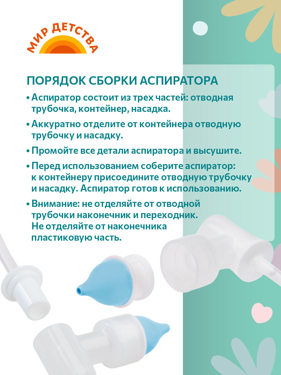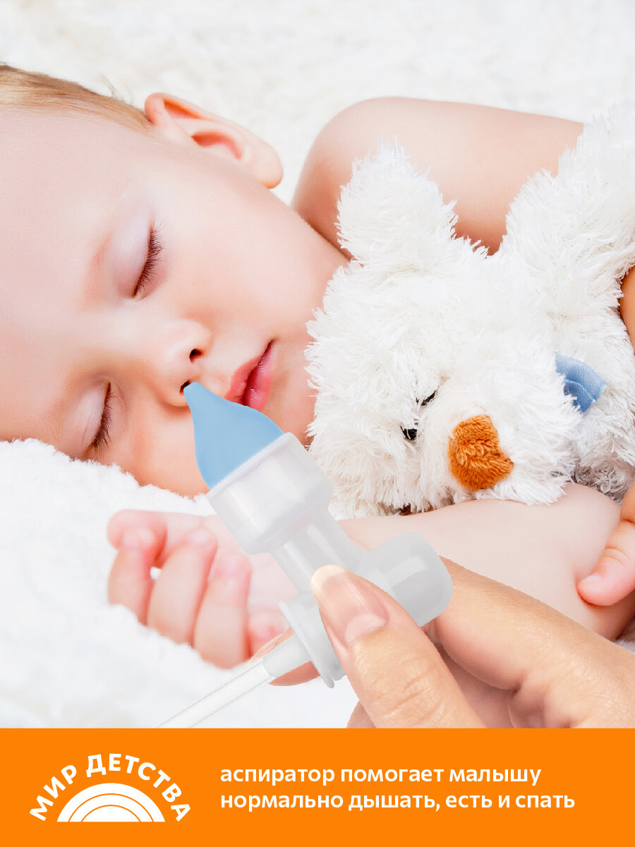 Аспиратор назальный соплеотсос с трубочкой МирДетства для новорожденных и детей, голубой, 0+ мес. интересное: