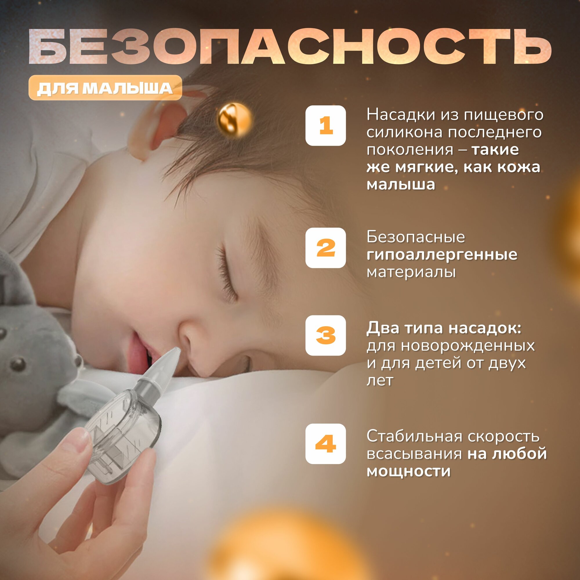 Аспиратор назальный электрический детский соплеотсос с музыкой и подсветкой для новорожденных