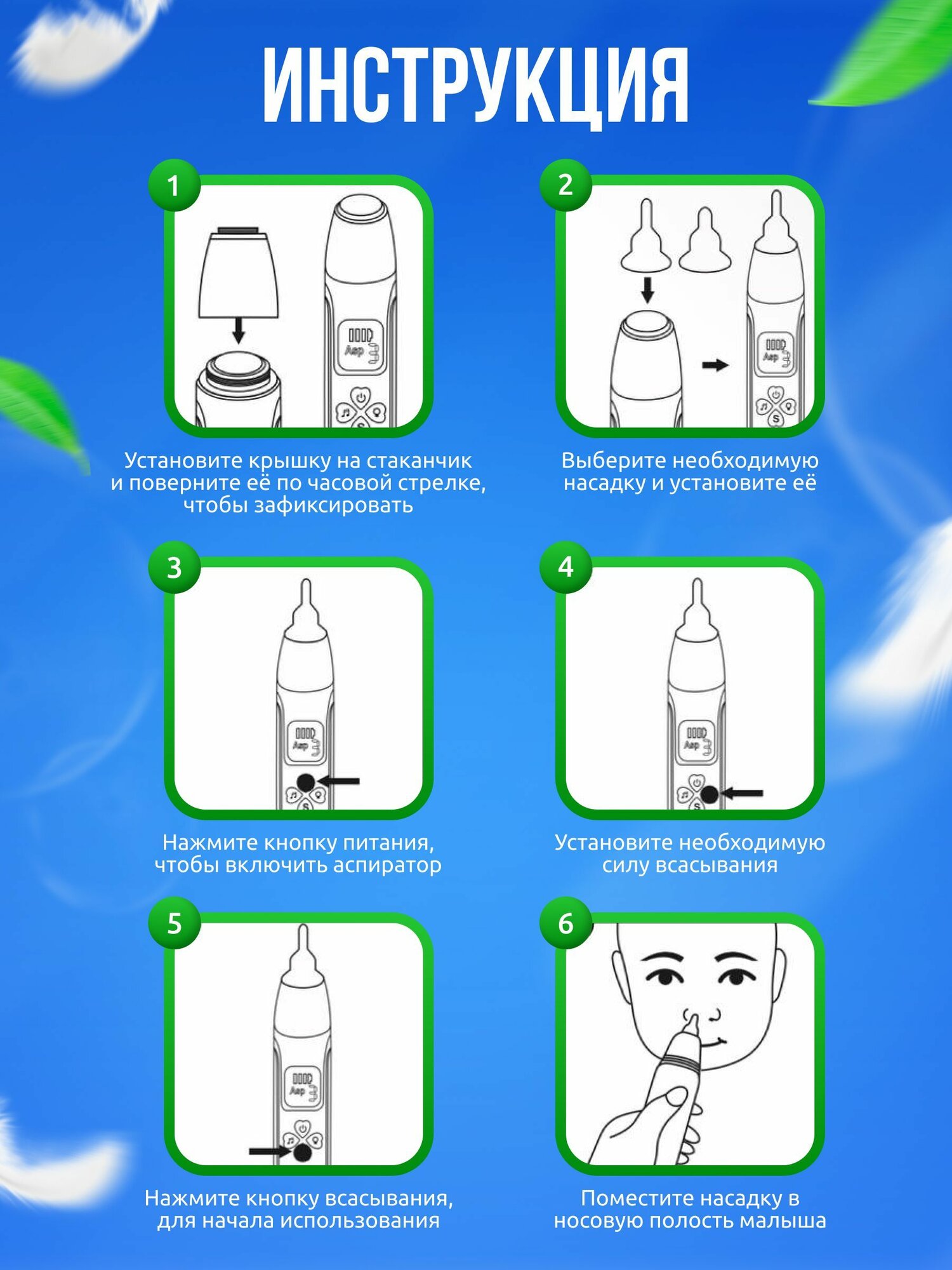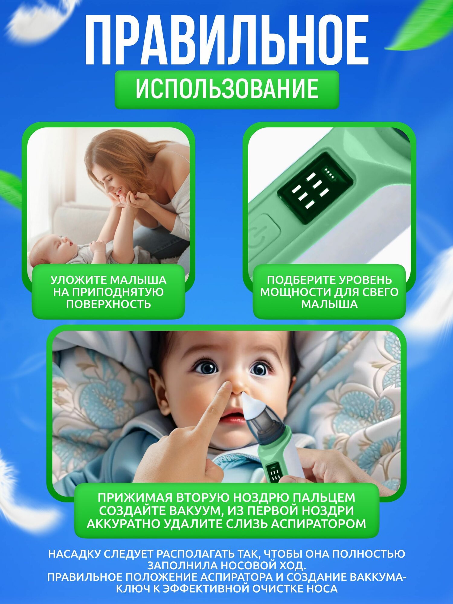 Аспиратор назальный электрический детский соплеотсос с музыкой и подсветкой для новорожденных