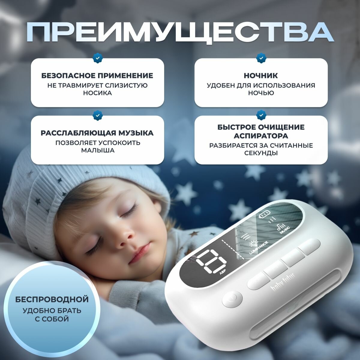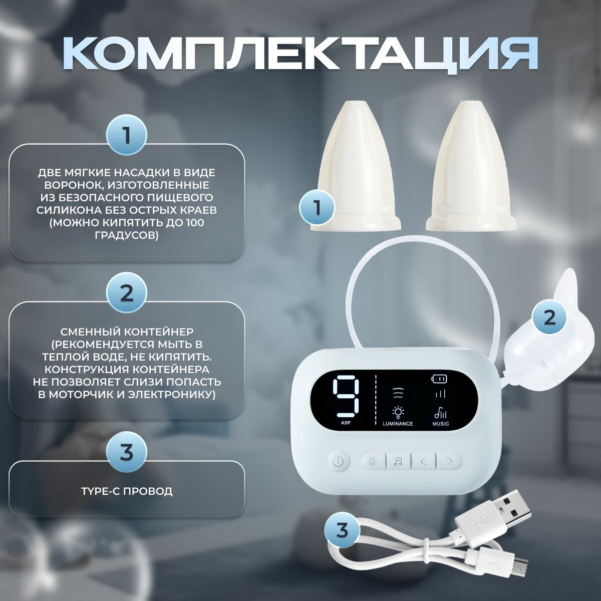 Аспиратор назальный электрический детский соплеотсос с музыкой и подсветкой для новорожденных