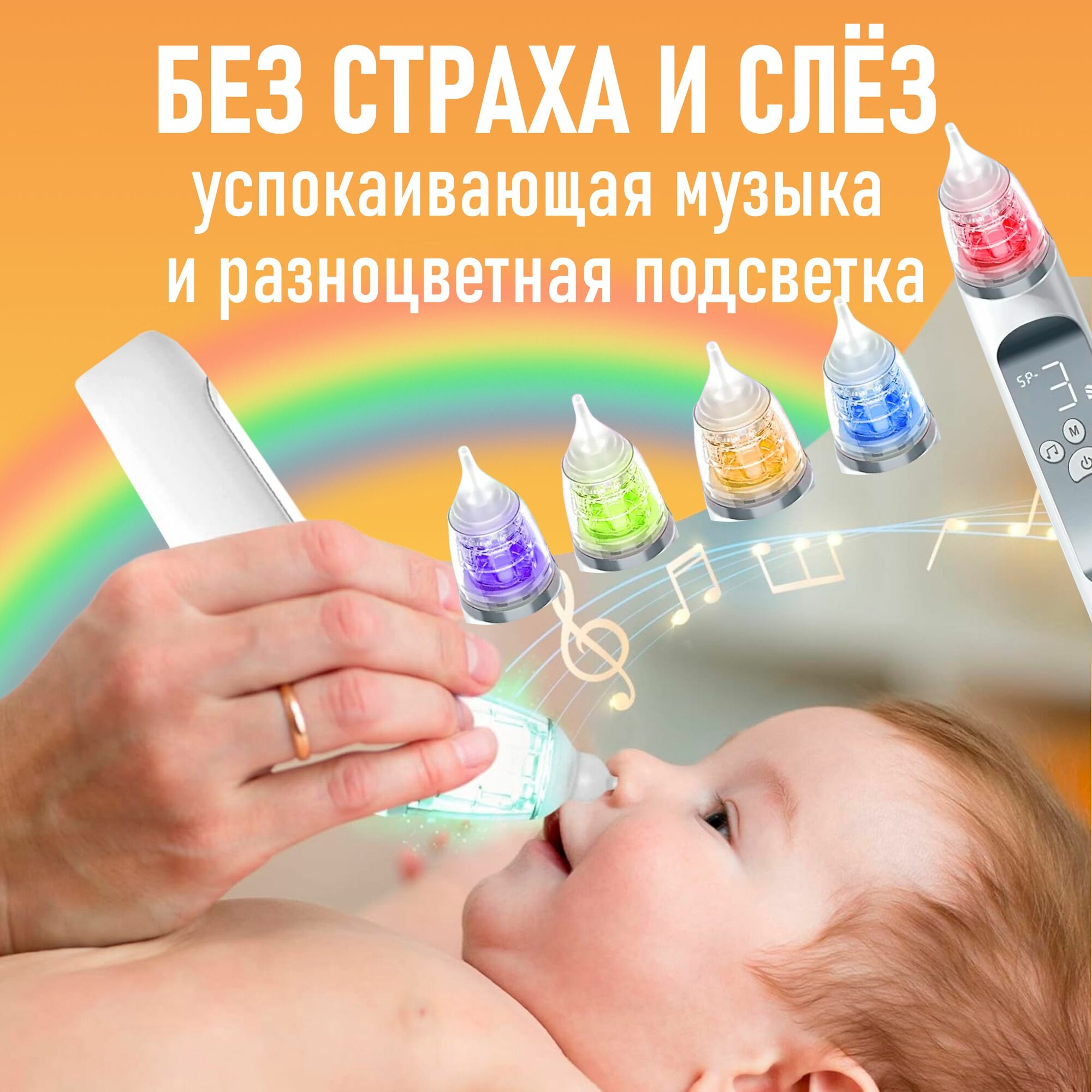 Аспиратор назальный электрический детский соплеотсос с музыкой и подсветкой для новорожденных
