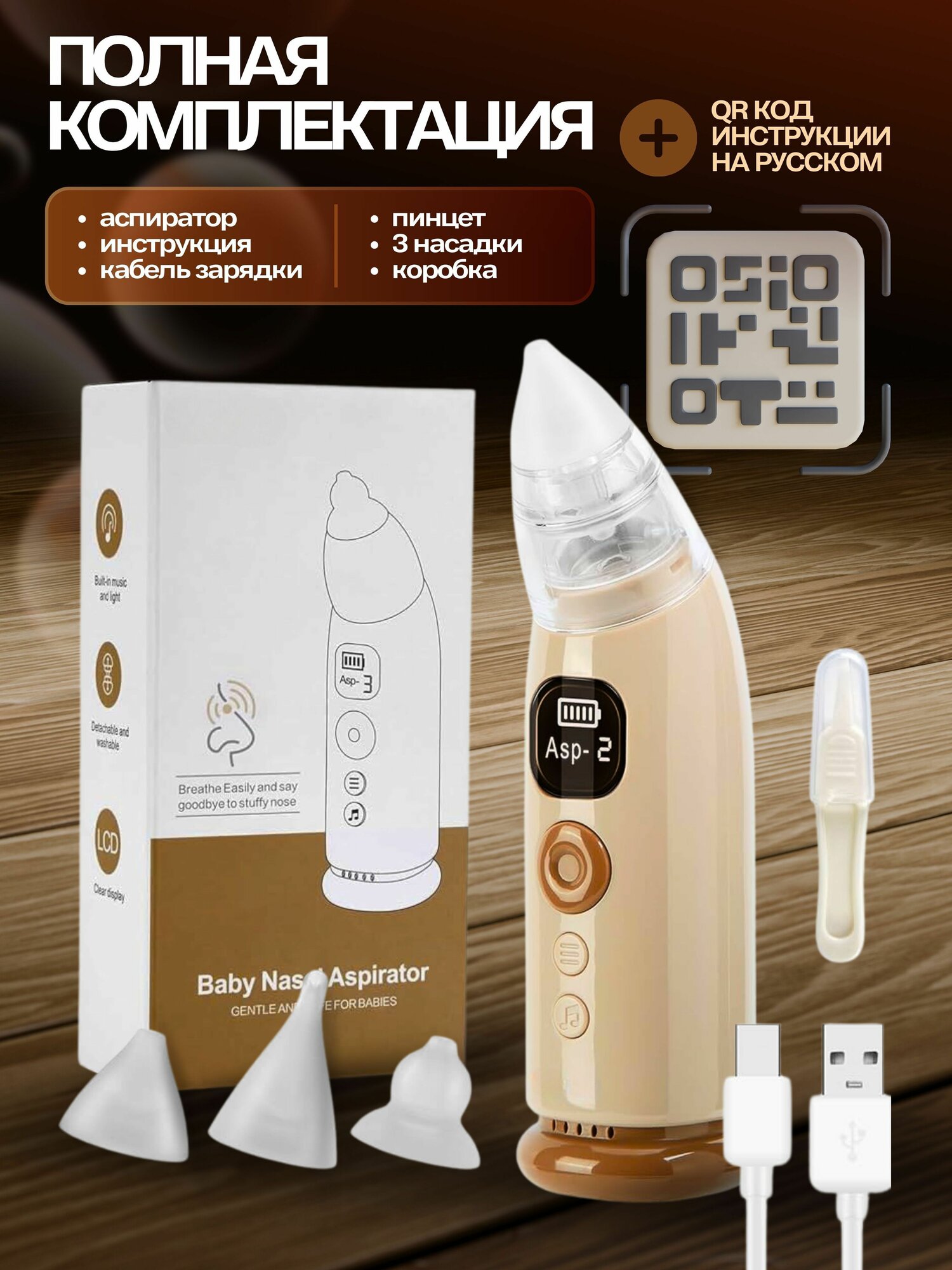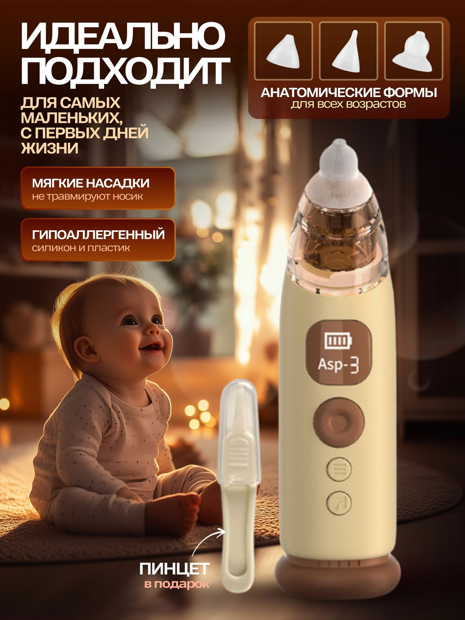 Аспиратор назальный электрический детский соплеотсос с музыкой и подсветкой для новорожденных