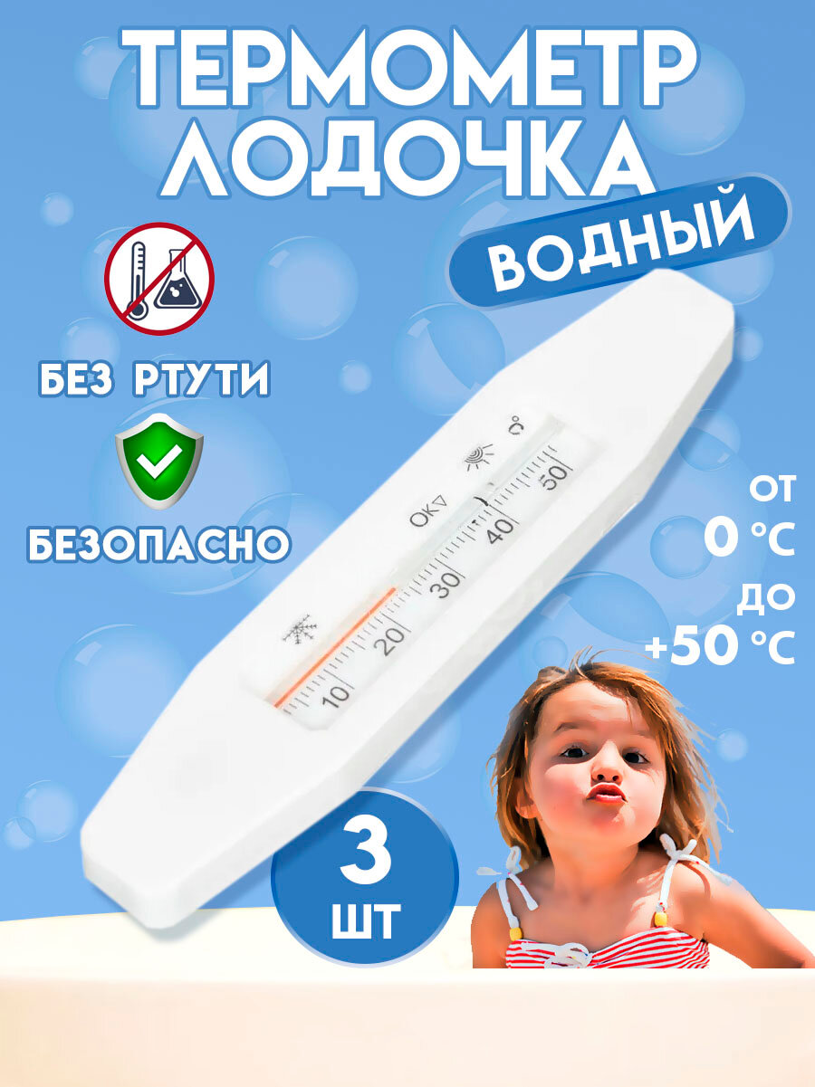 Термометр для воды ЛОДОЧКА безртутный (0.+50С), водный термометр детский для купания, 3 штуки интересное: