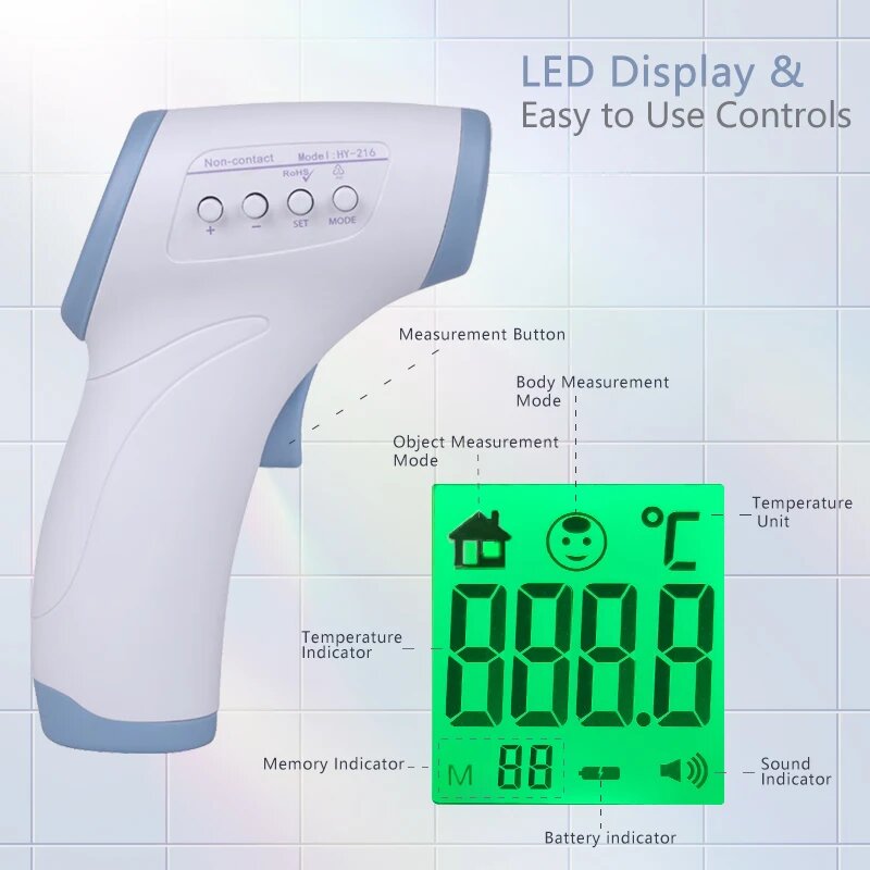 Бесконтактный инфракрасный термометр HY-216, White and Green интересное: