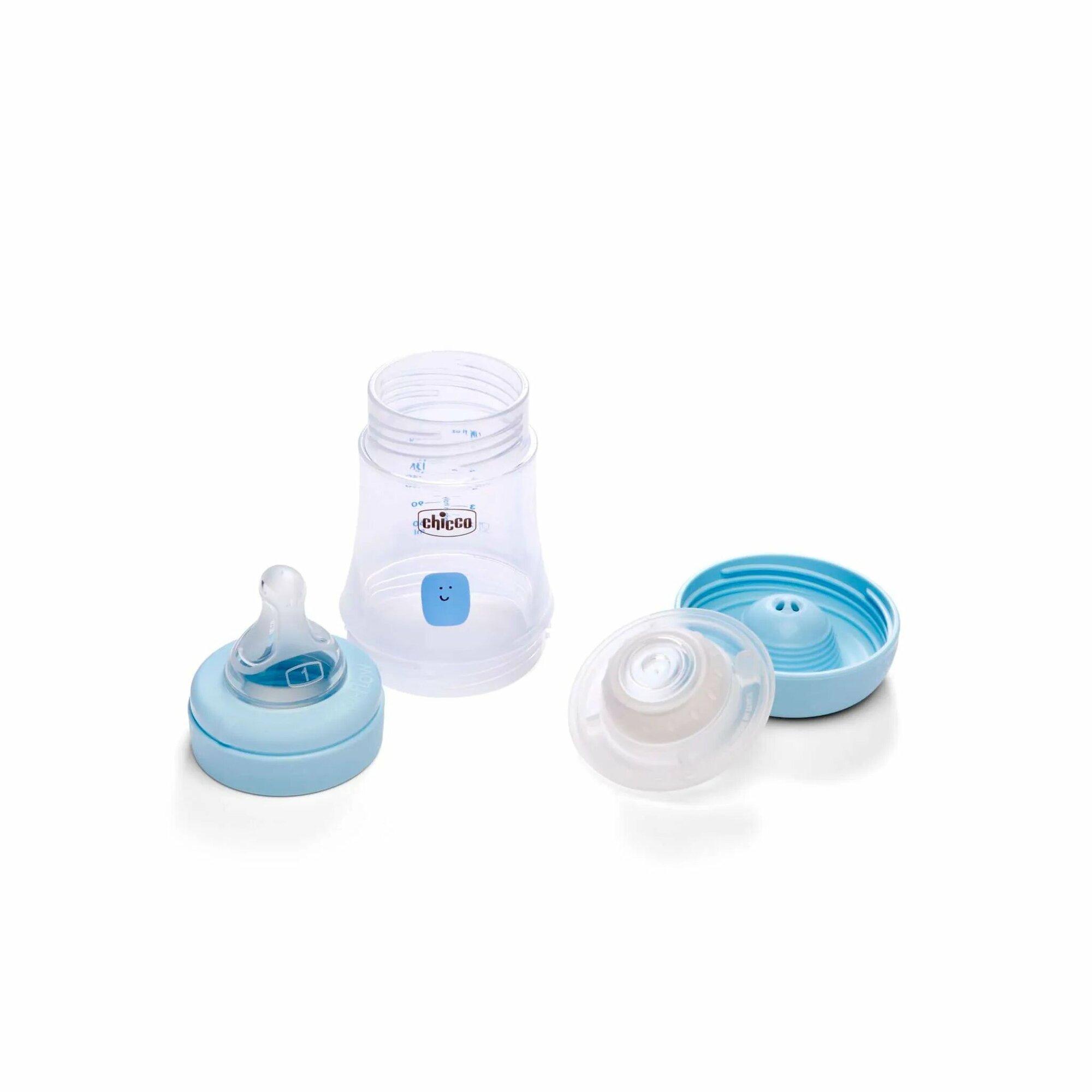Бутылочка для кормления Chicco Perfect5 Boy голубая, прозрачная, антиколиковая/ силиконовая соска/ медленный поток РР, 150 мл, 0мес.+ интересное: