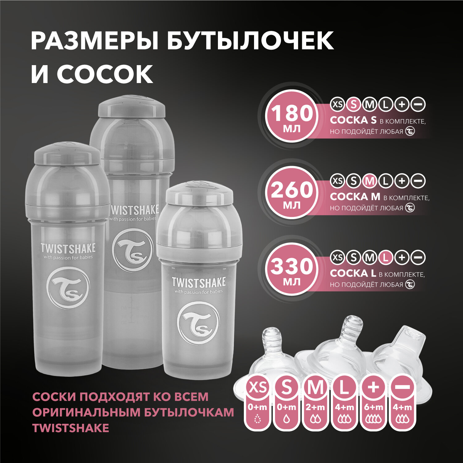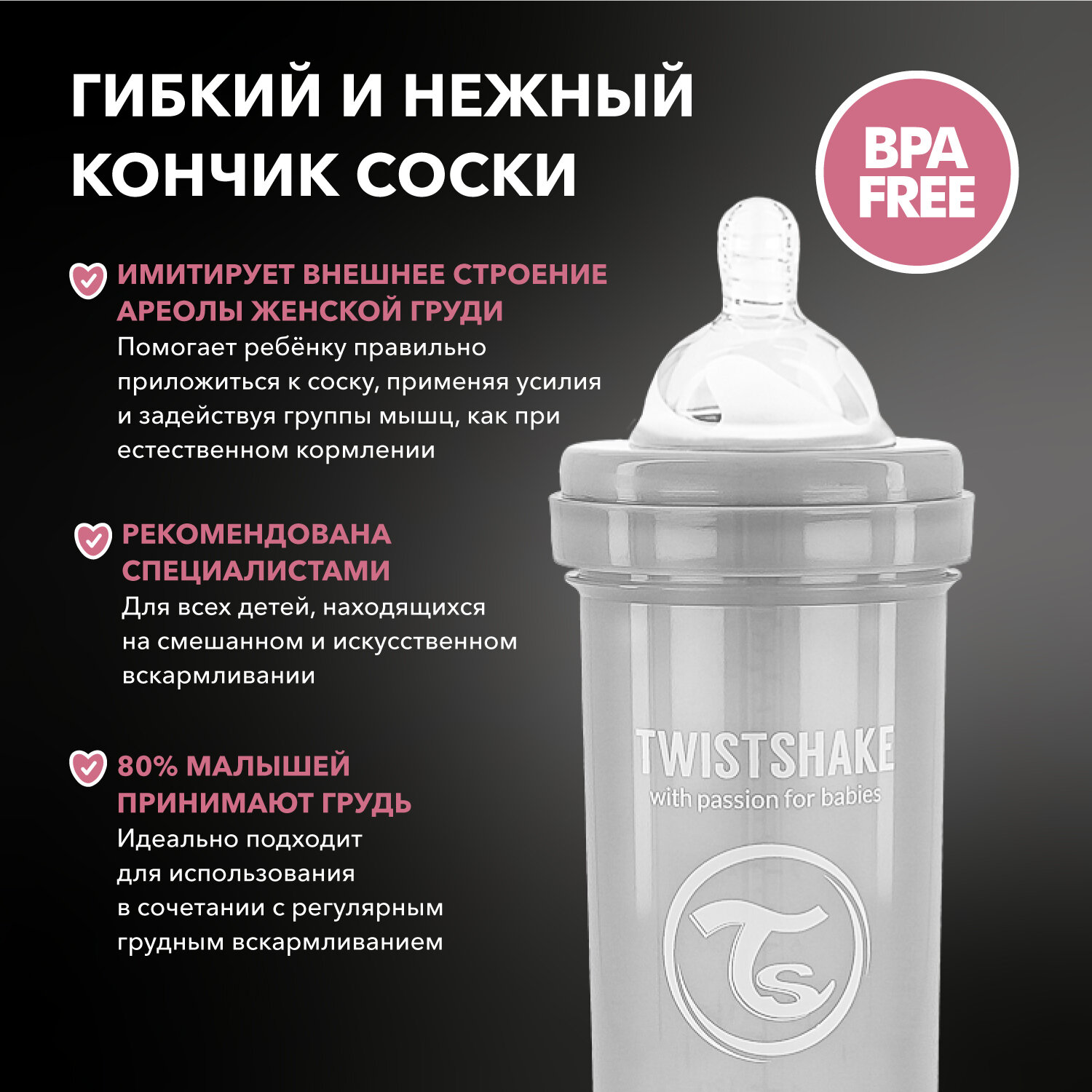 Детская антиколиковая бутылочка для кормления Twistshake, 330 мл, от 4 мес. Пастельный серый интересное:
