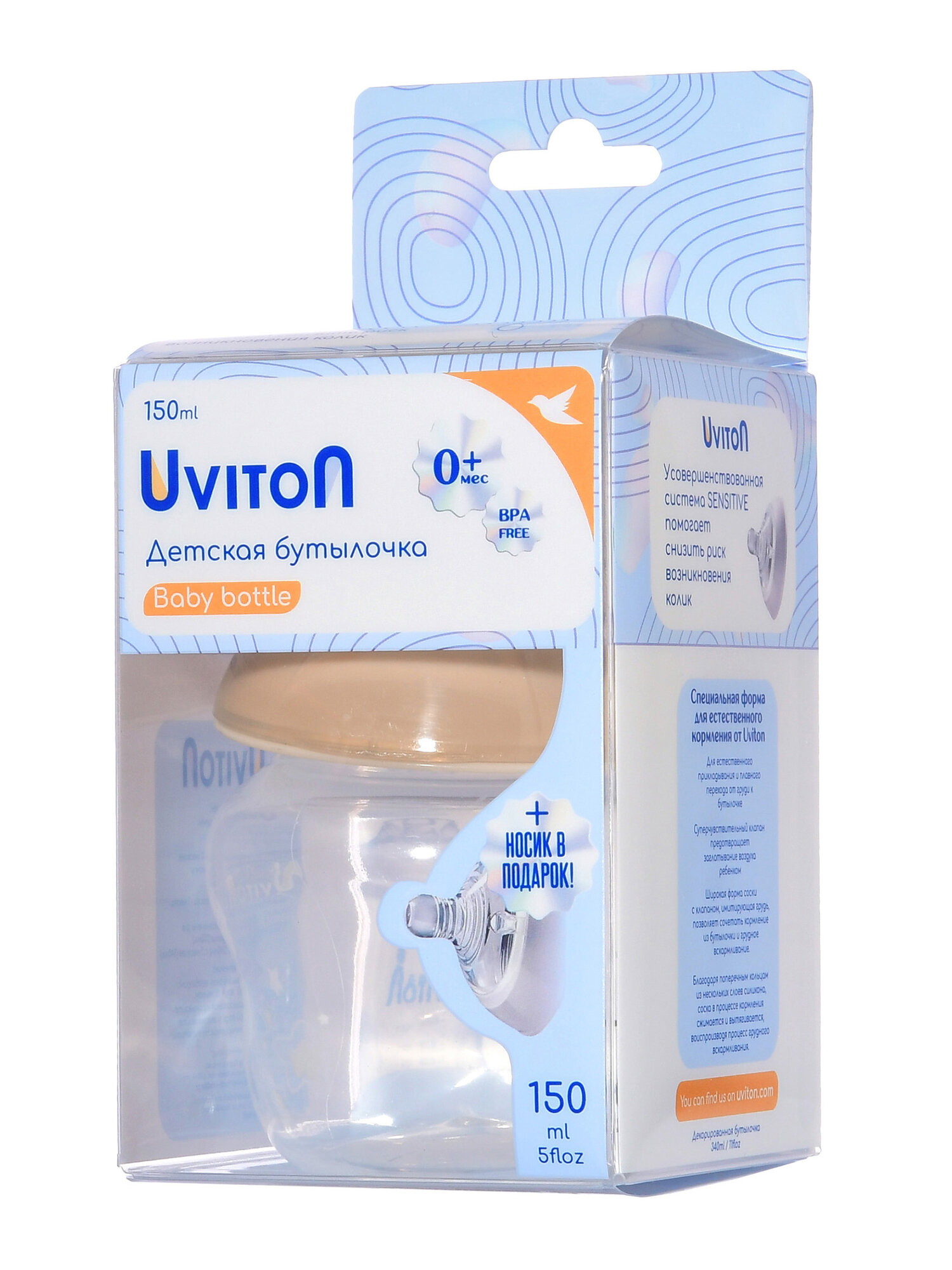 Бутылочка для новорожденных от бренда Uviton 150 мл, 0+ мес. интересное: