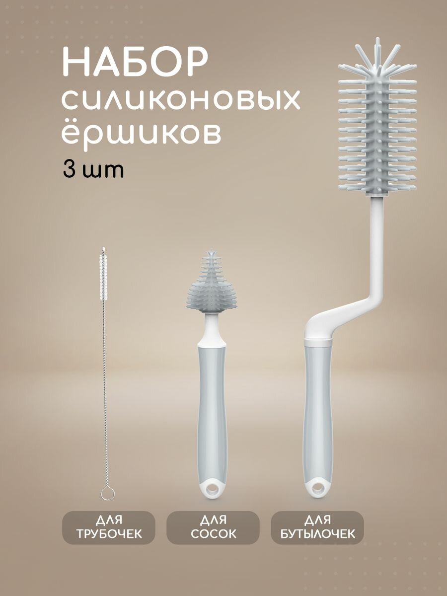 Купить Набор ершиков Miyoumi, для бутылочек, сосок, силиконовые, 3шт