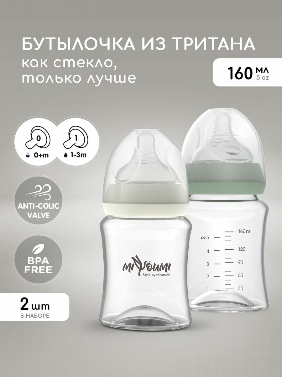 Купить Набор бутылочек для кормления Miyoumi 160ml, антиколиковые, силикон, тритан, 2 шт