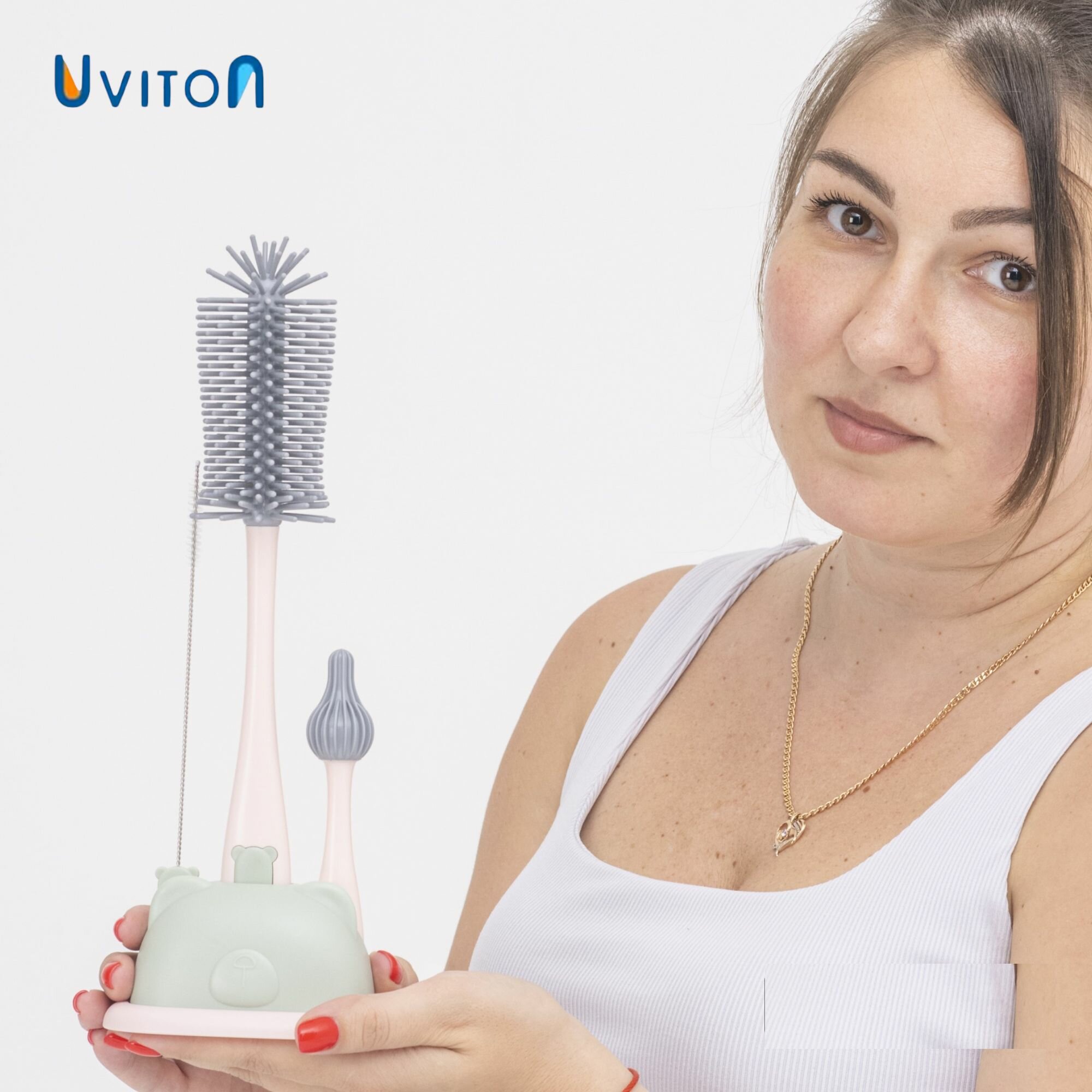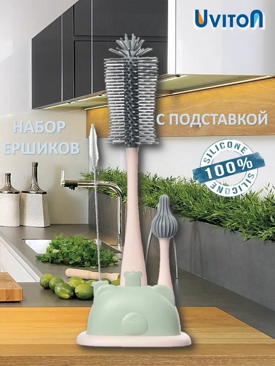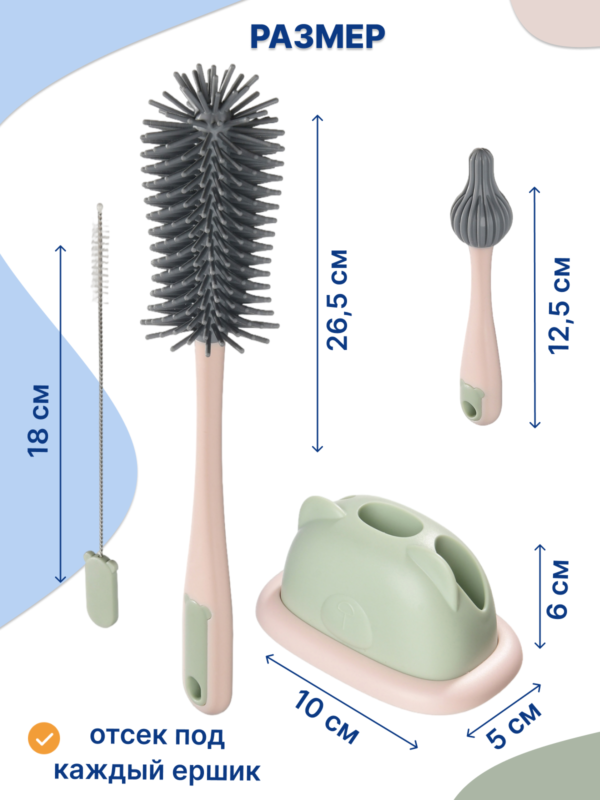 Ершик для бутылок силиконовый длинный + щеточка для сосок 2 в 1 интересное: