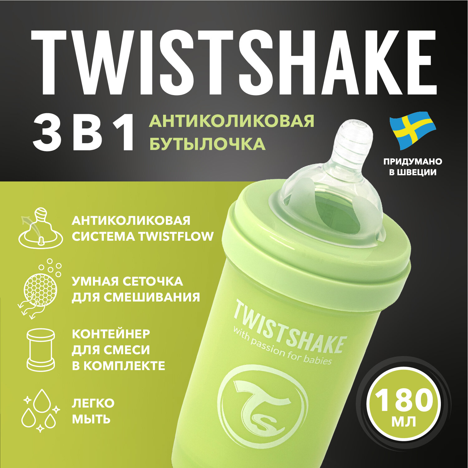 Детская антиколиковая бутылочка для кормления Twistshake, 180 мл, от 0 мес. Белый Бриллиант