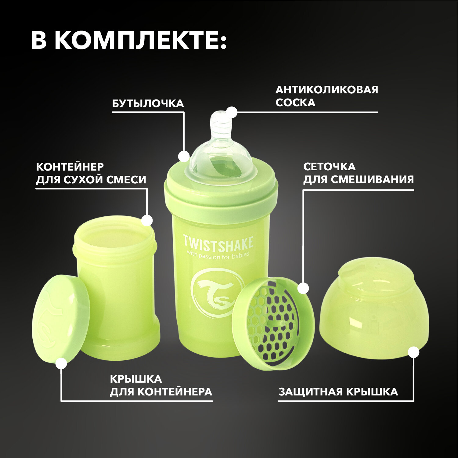 СохранитьДетская антиколиковая бутылочка Twistshake для кормления, 180 мл, от 0 мес. Зелёный кактус интересное: