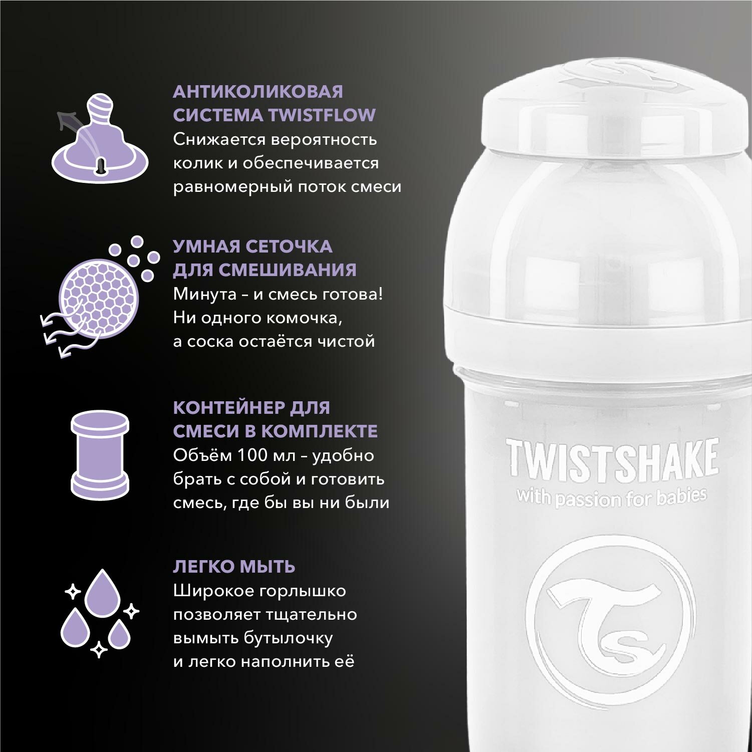Купить Детская антиколиковая бутылочка для кормления Twistshake, 180 мл, от 0 мес. Белый Бриллиант