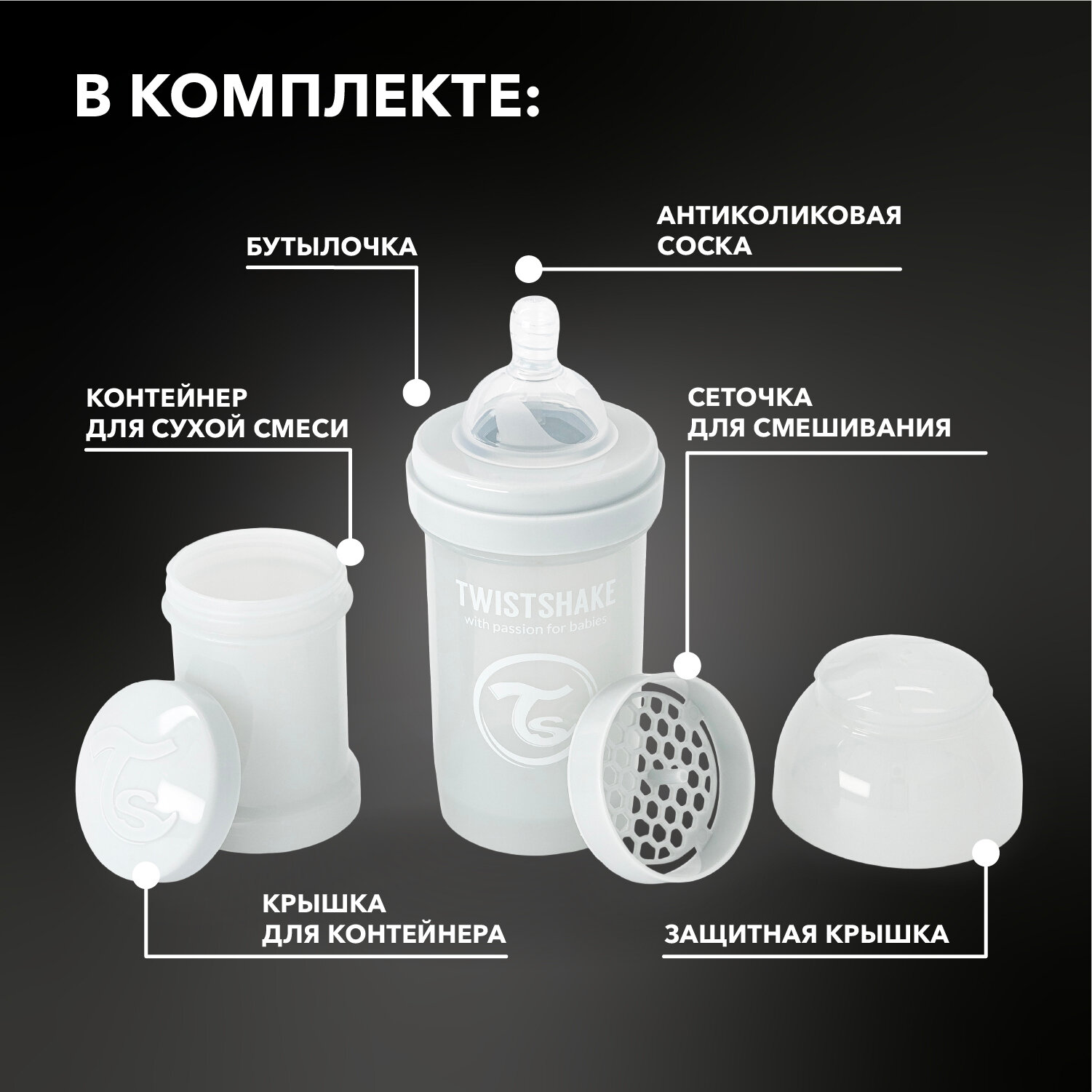 Детская антиколиковая бутылочка для кормления Twistshake, 180 мл, от 0 мес. Белый Бриллиант