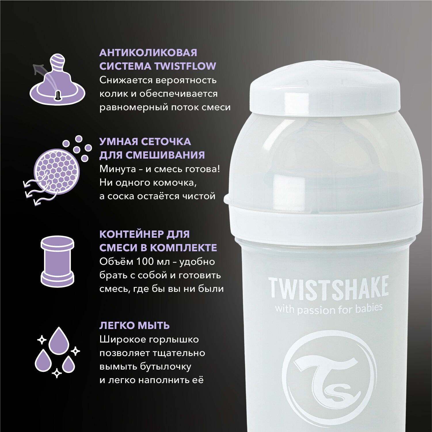 СохранитьДетская антиколиковая бутылочка Twistshake для кормления, 180 мл, от 0 мес. Светло-серый интересное: